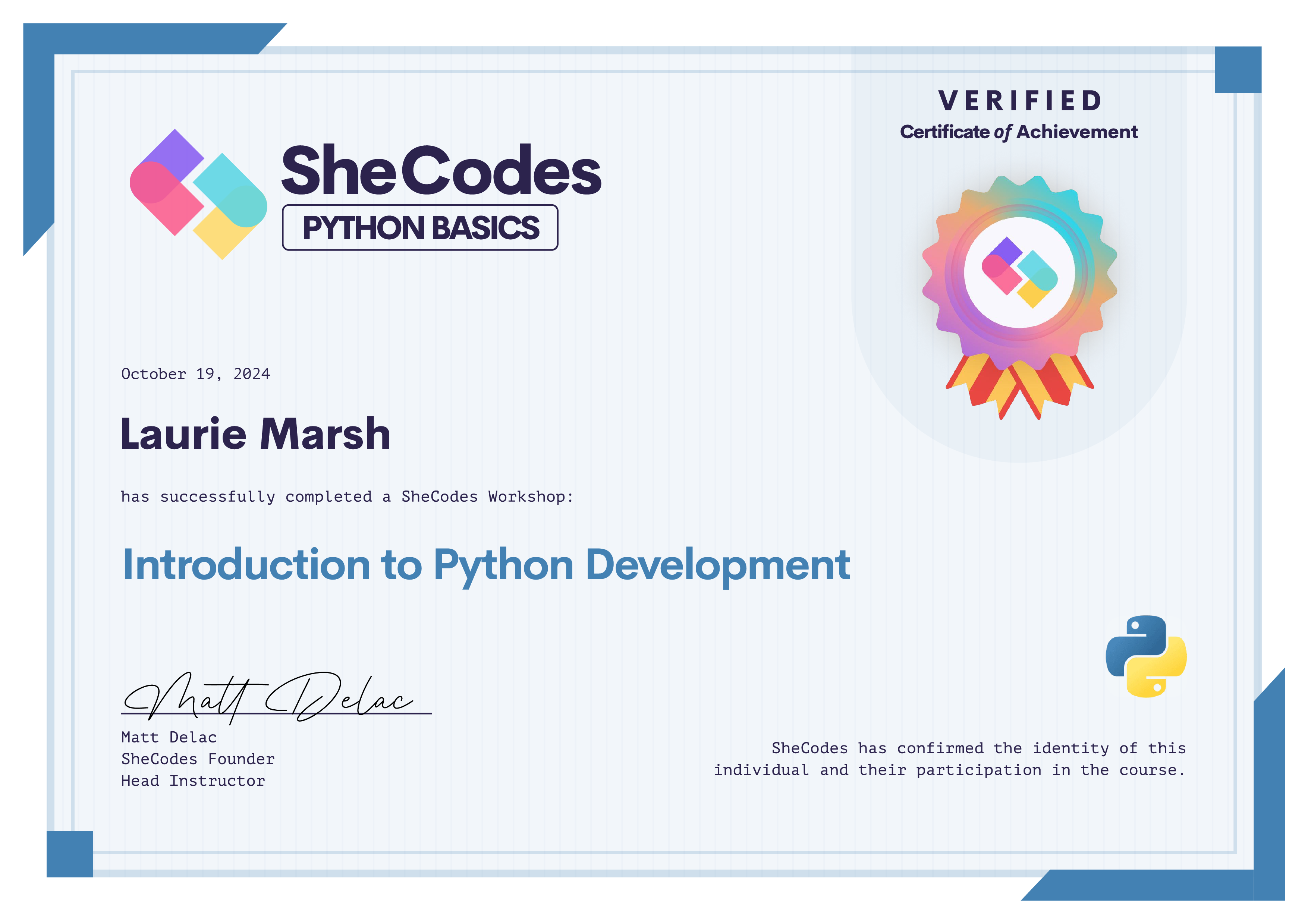 Laurie Marsh SheCodes Profile | SheCodes
