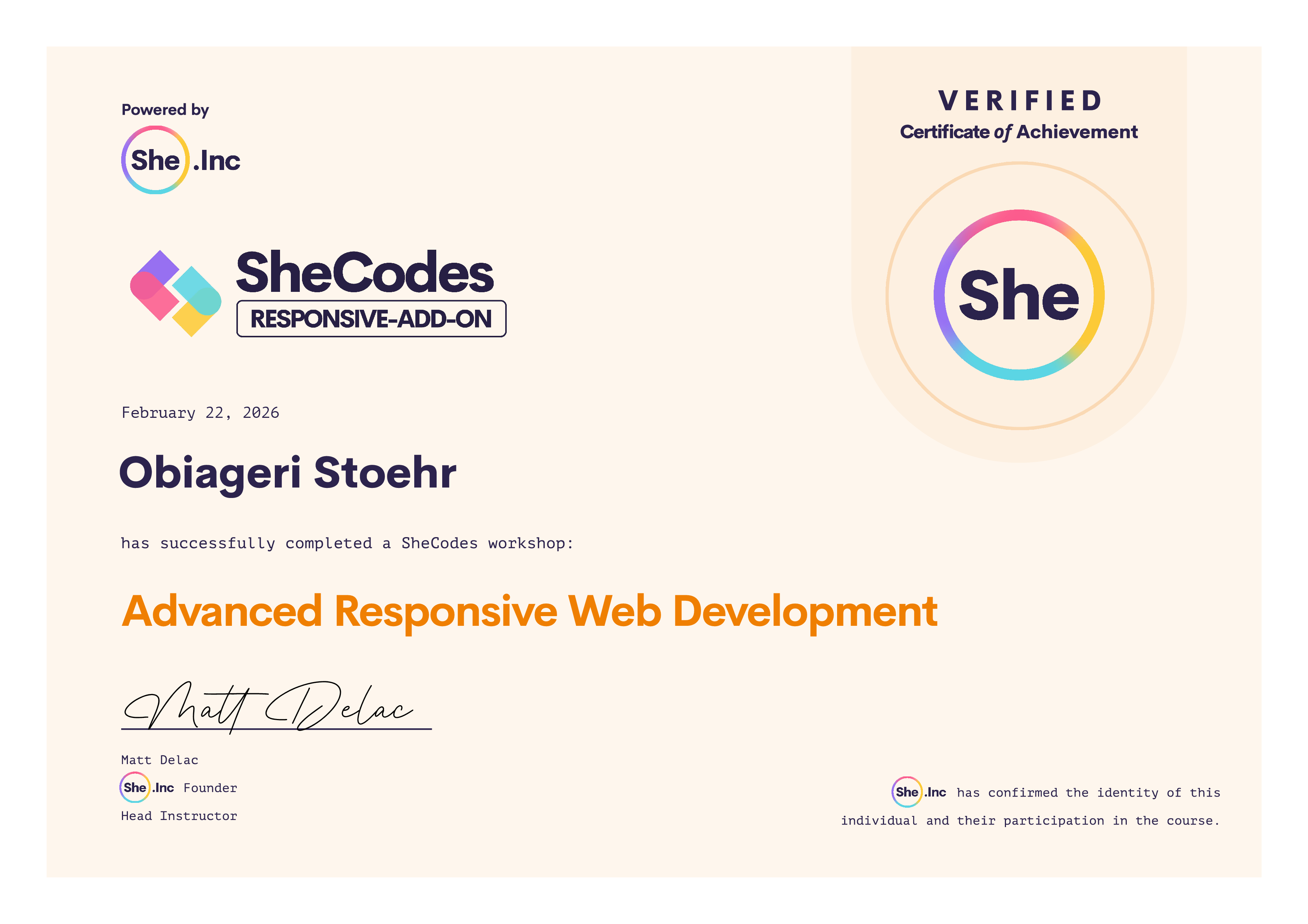 🎓 SheCodes Certifications