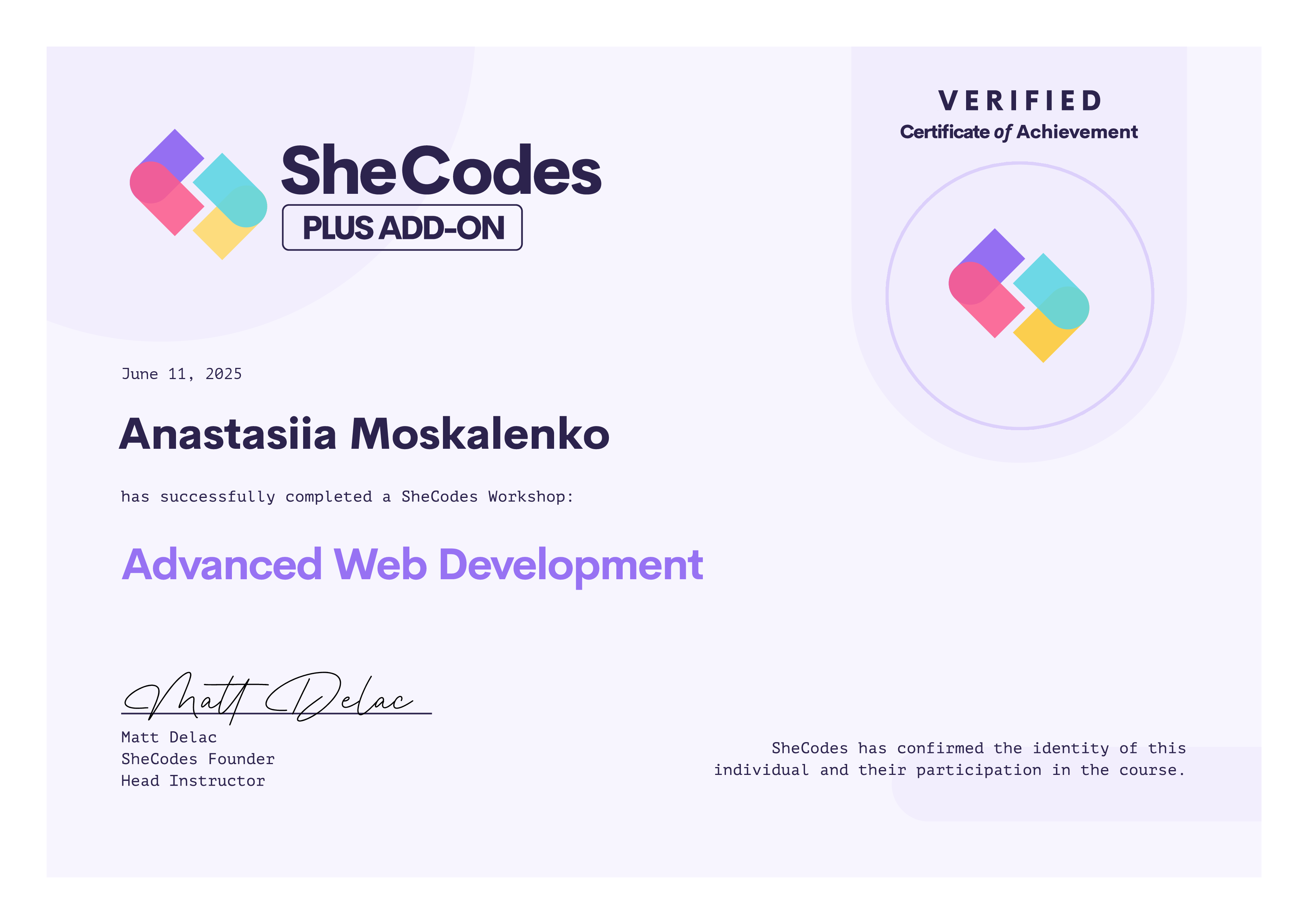 Anastasiia Moskalenko SheCodes Profile | SheCodes