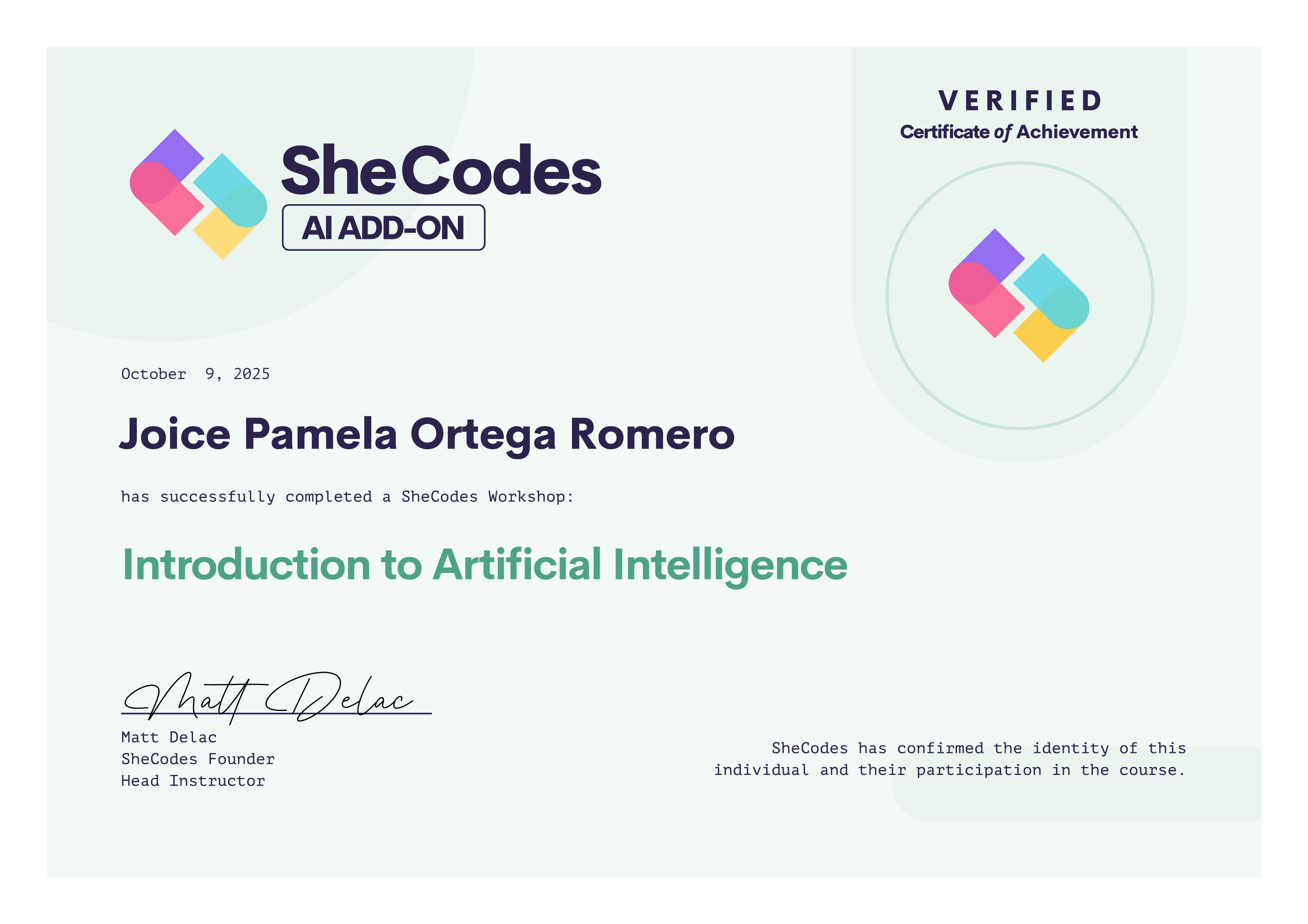 Joice Pamela Ortega Romero SheCodes Profile | SheCodes
