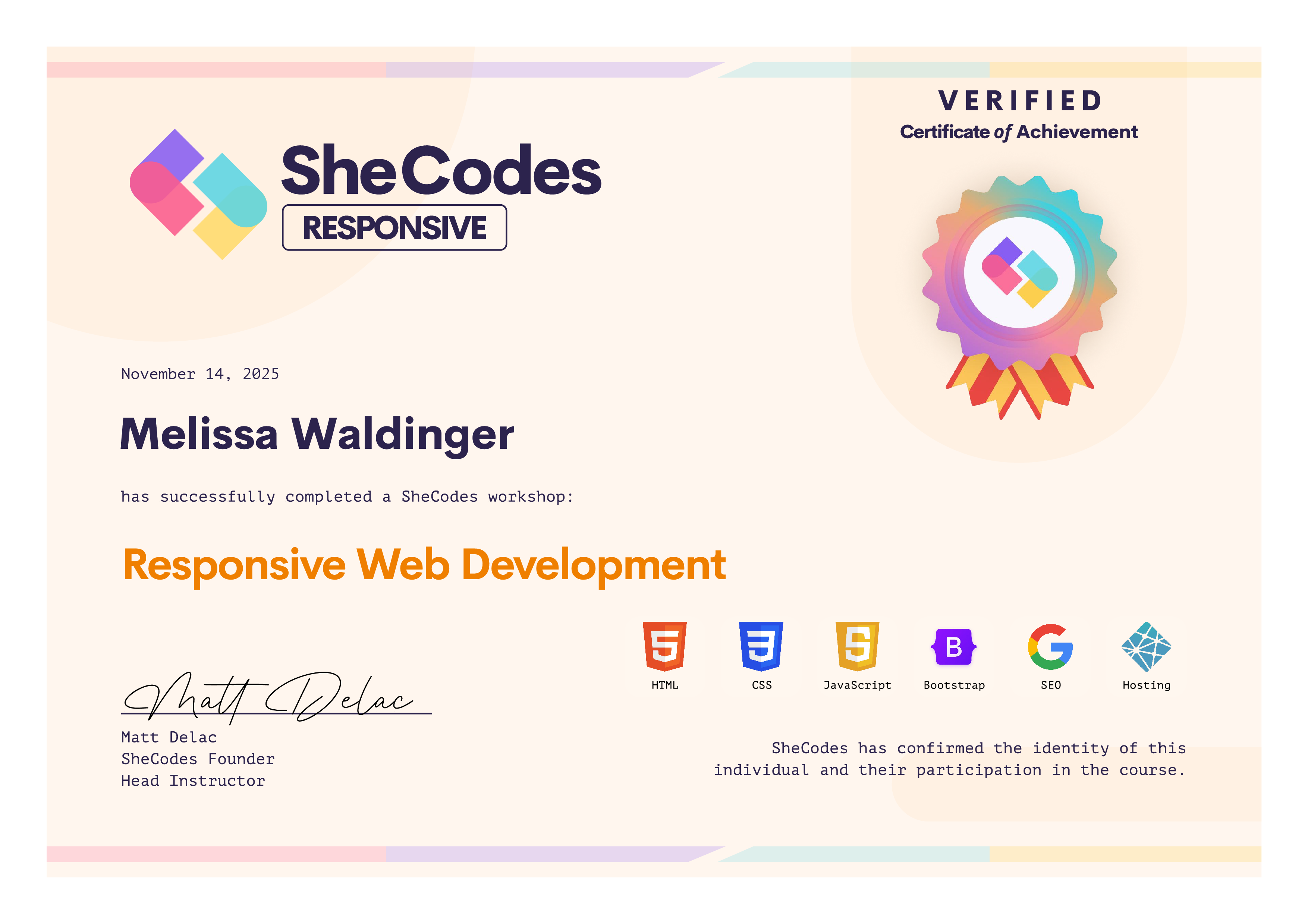Melissa Waldinger SheCodes Profile | SheCodes