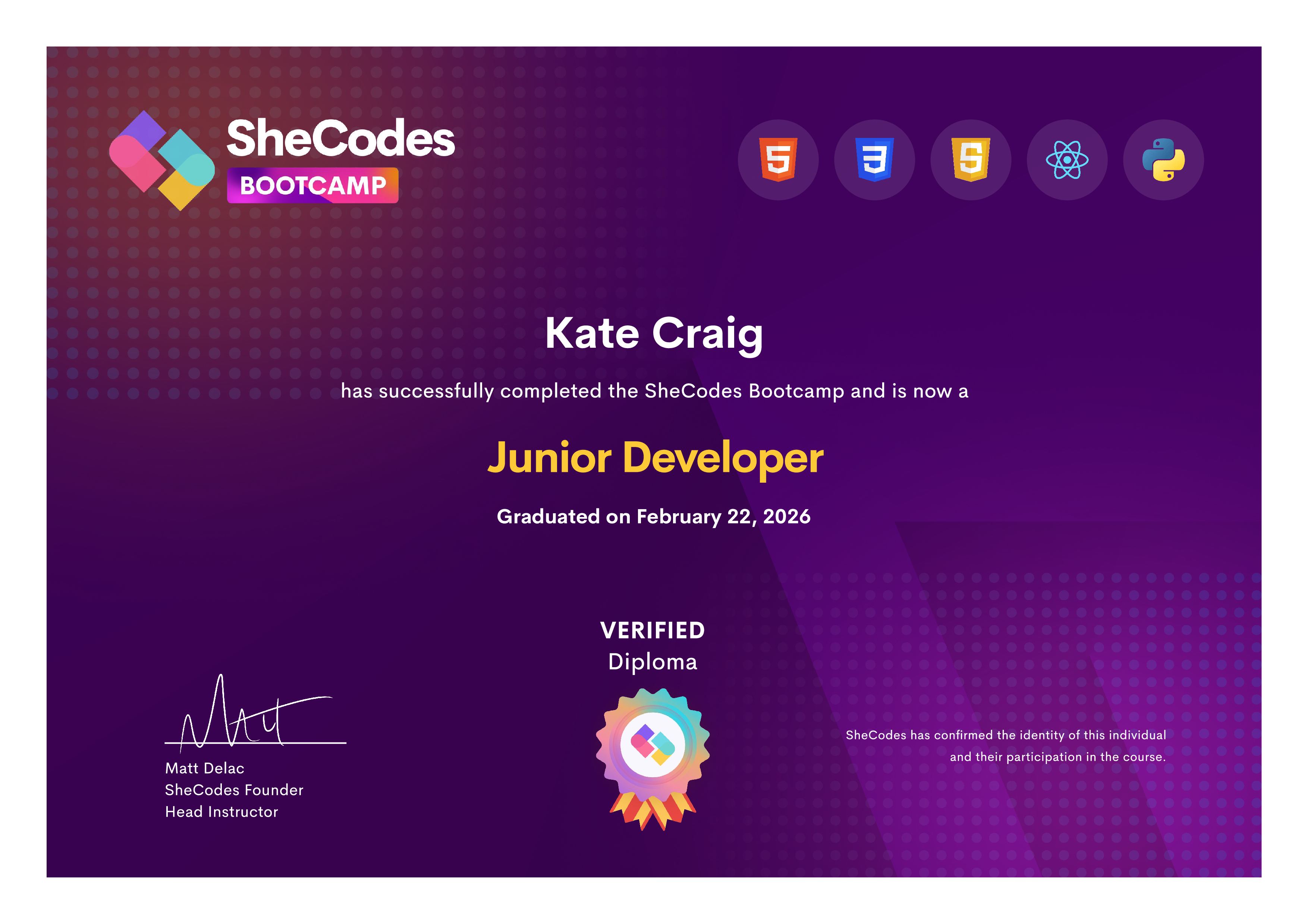 🎖️ SheCodes Verified Diplomas
