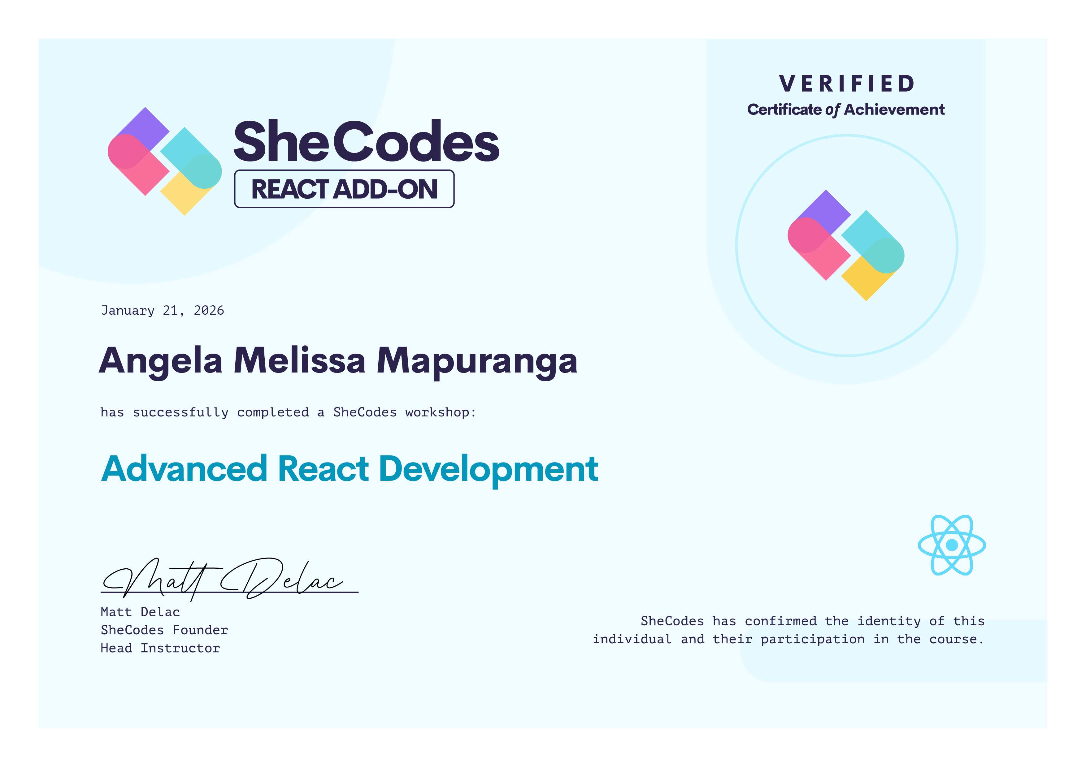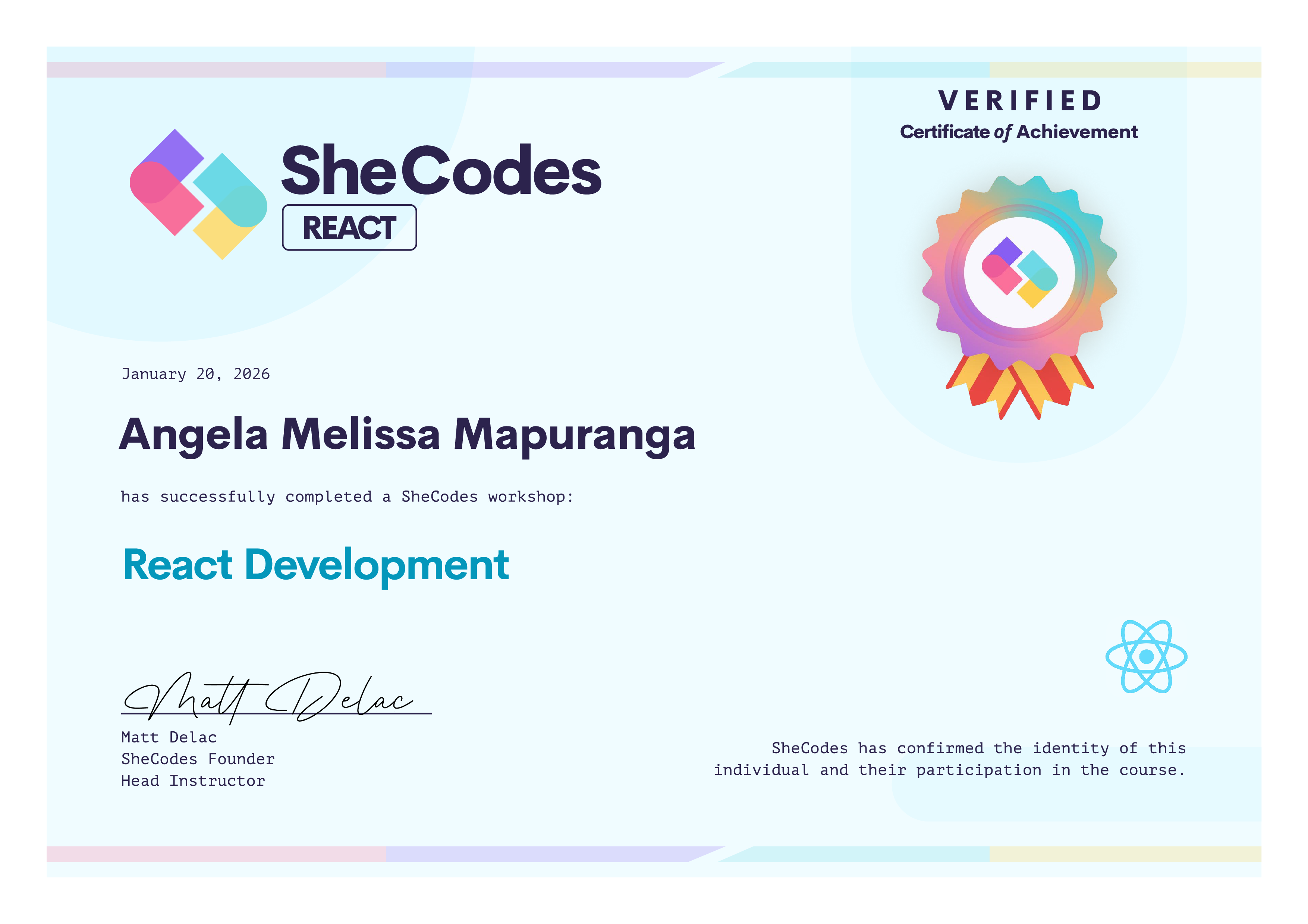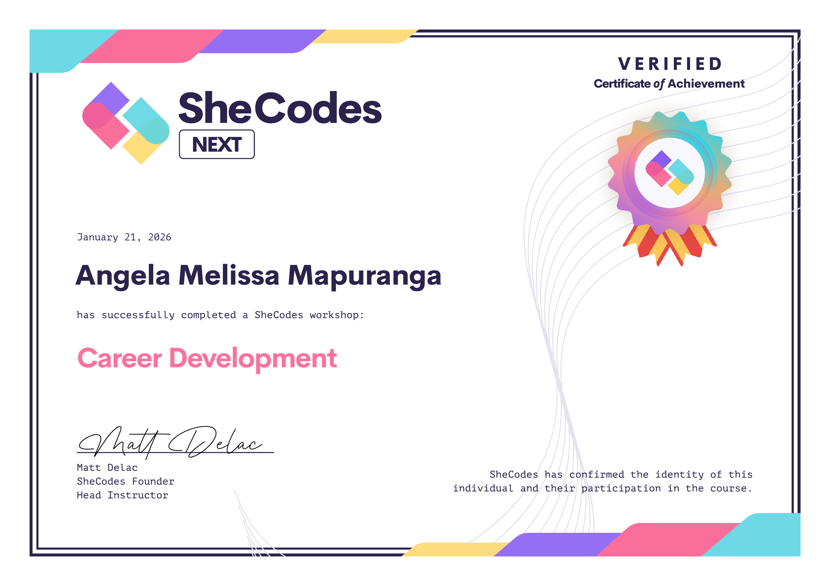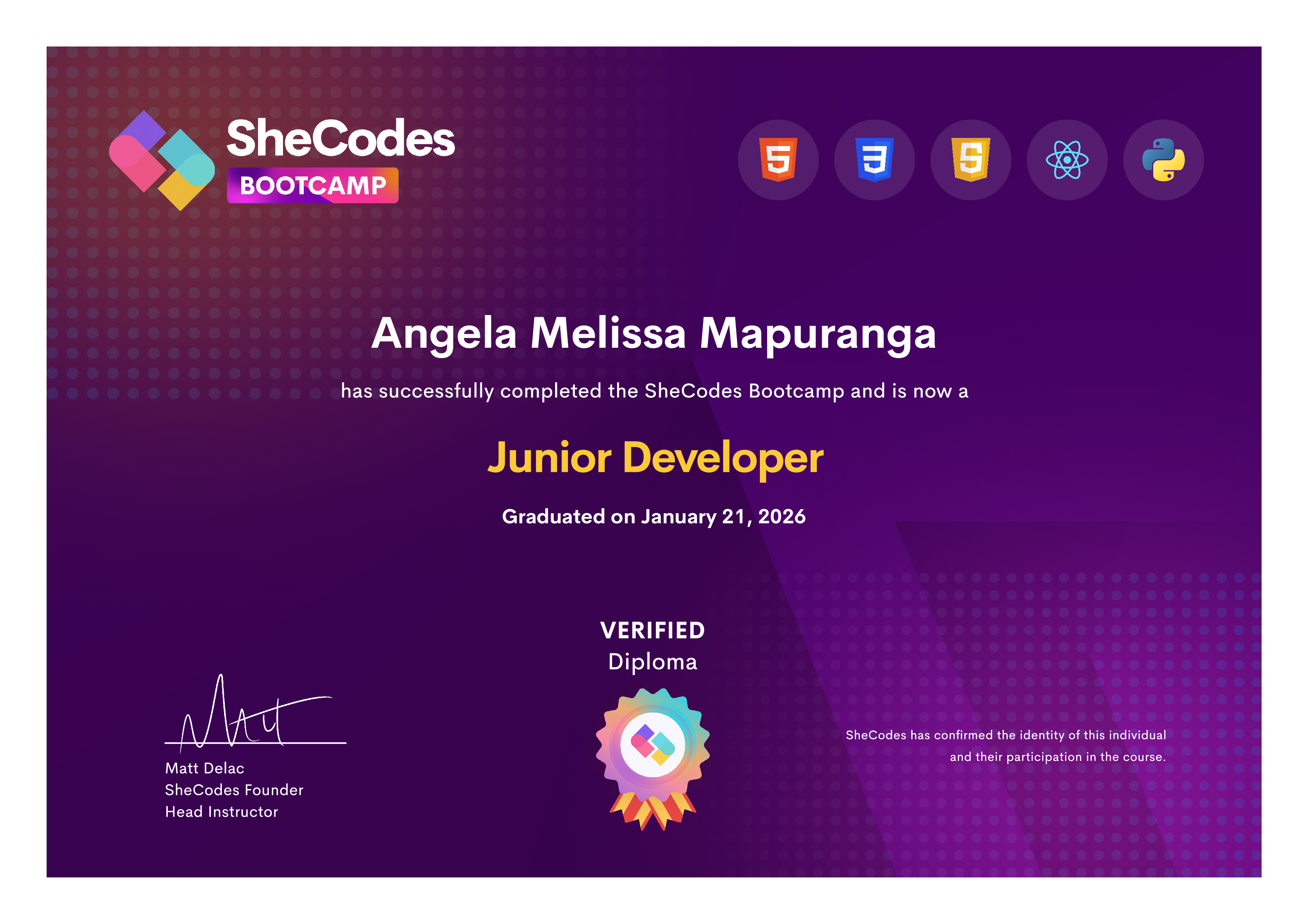 🎖️ SheCodes Verified Diplomas