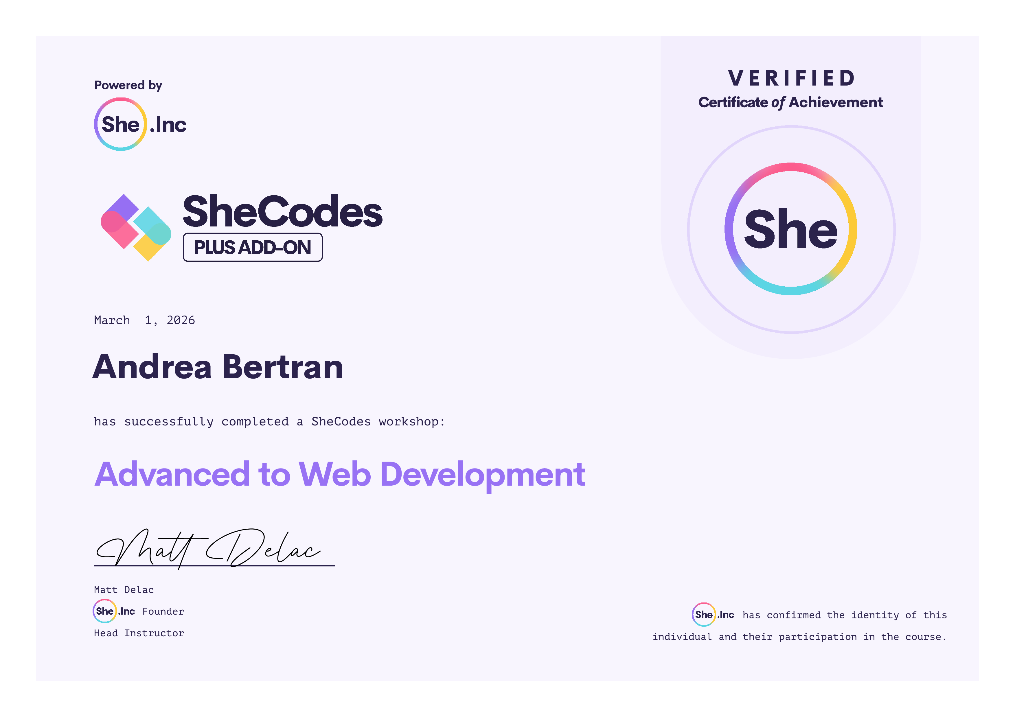 🎓 SheCodes Certifications