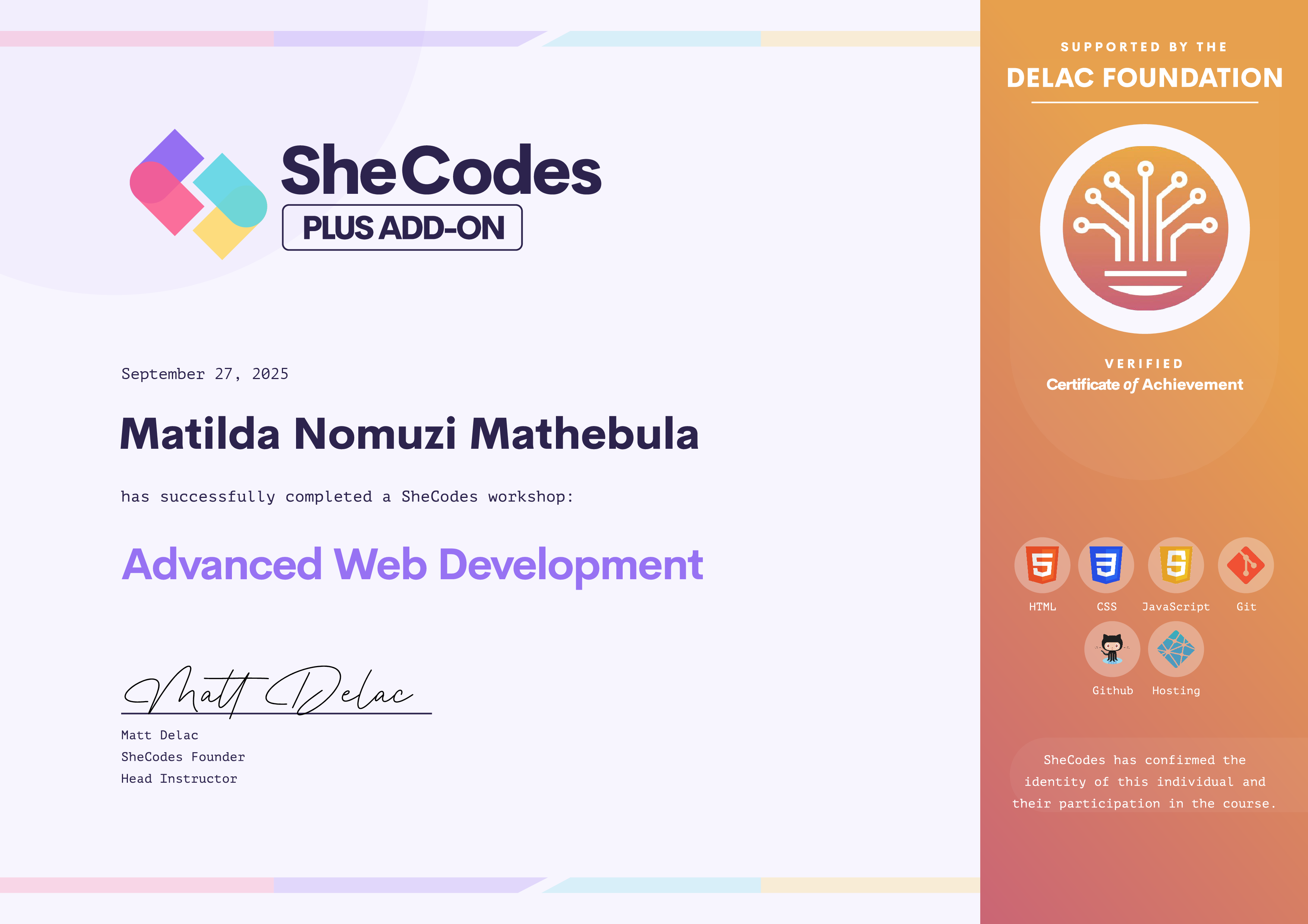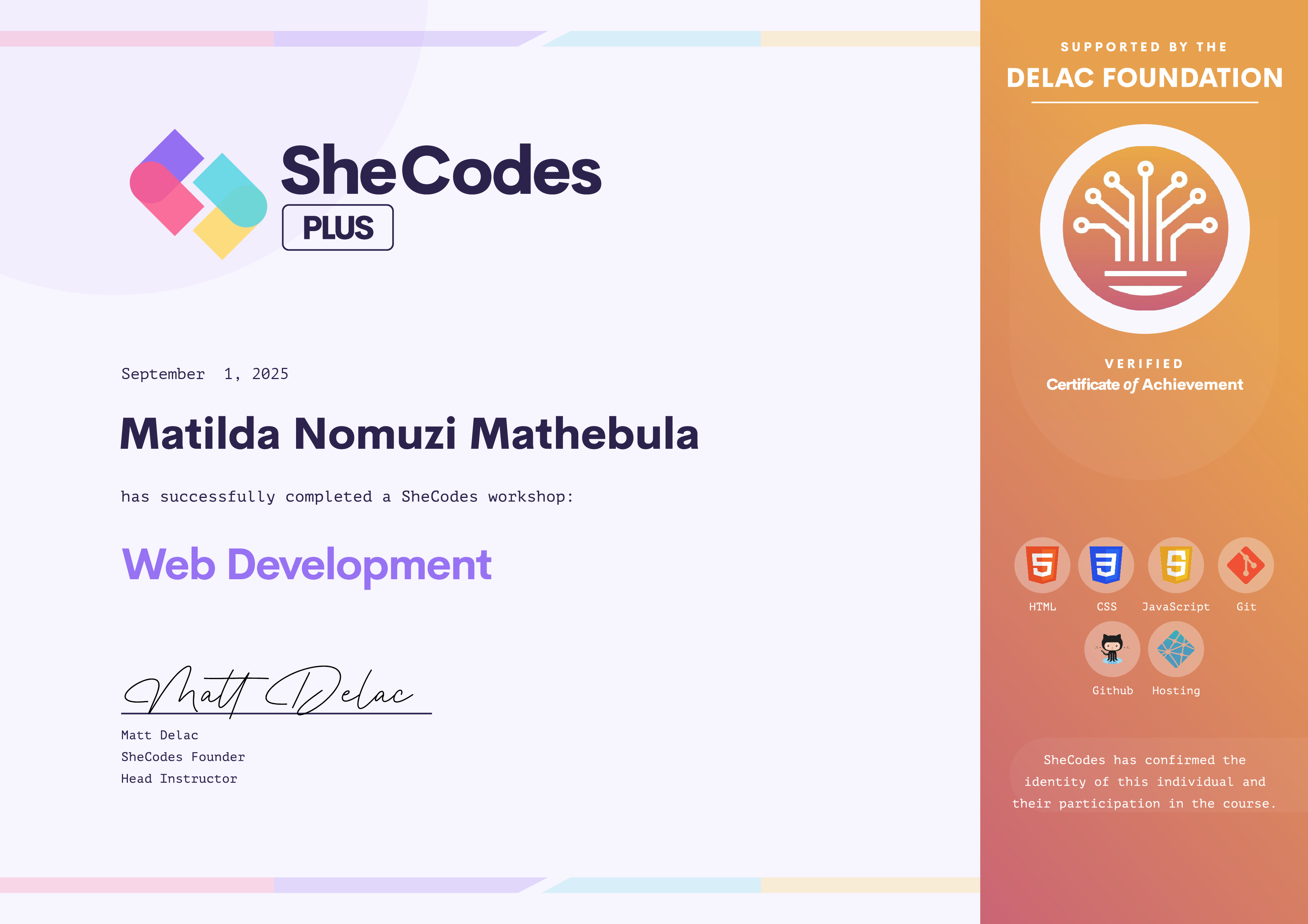 Matilda Nomuzi Mathebula SheCodes Profile | SheCodes