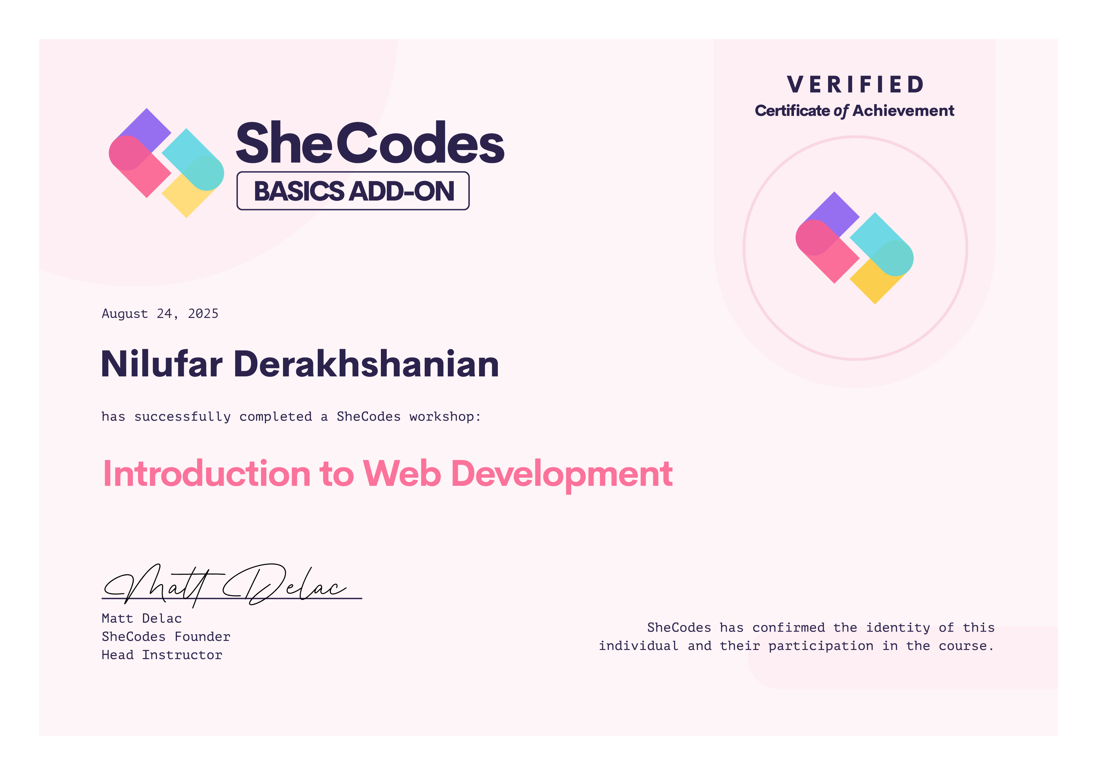 Nilufar Derakhshanian SheCodes Profile | SheCodes
