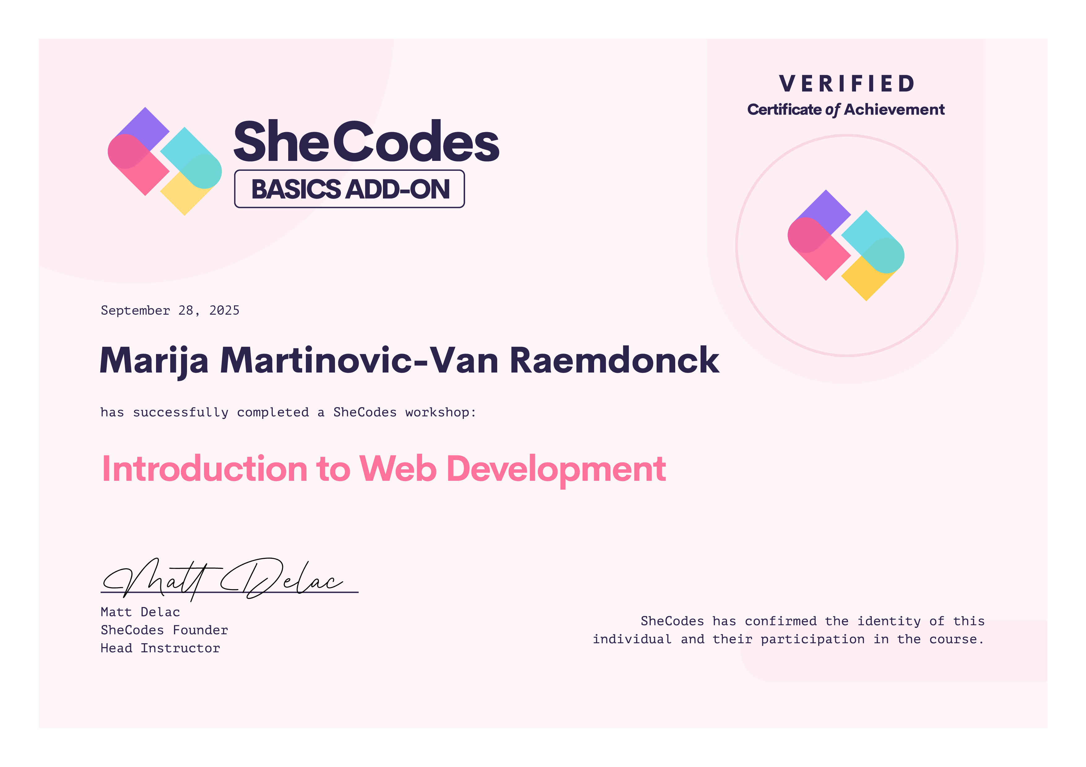 Marija Martinovic-Van Raemdonck SheCodes Profile | SheCodes