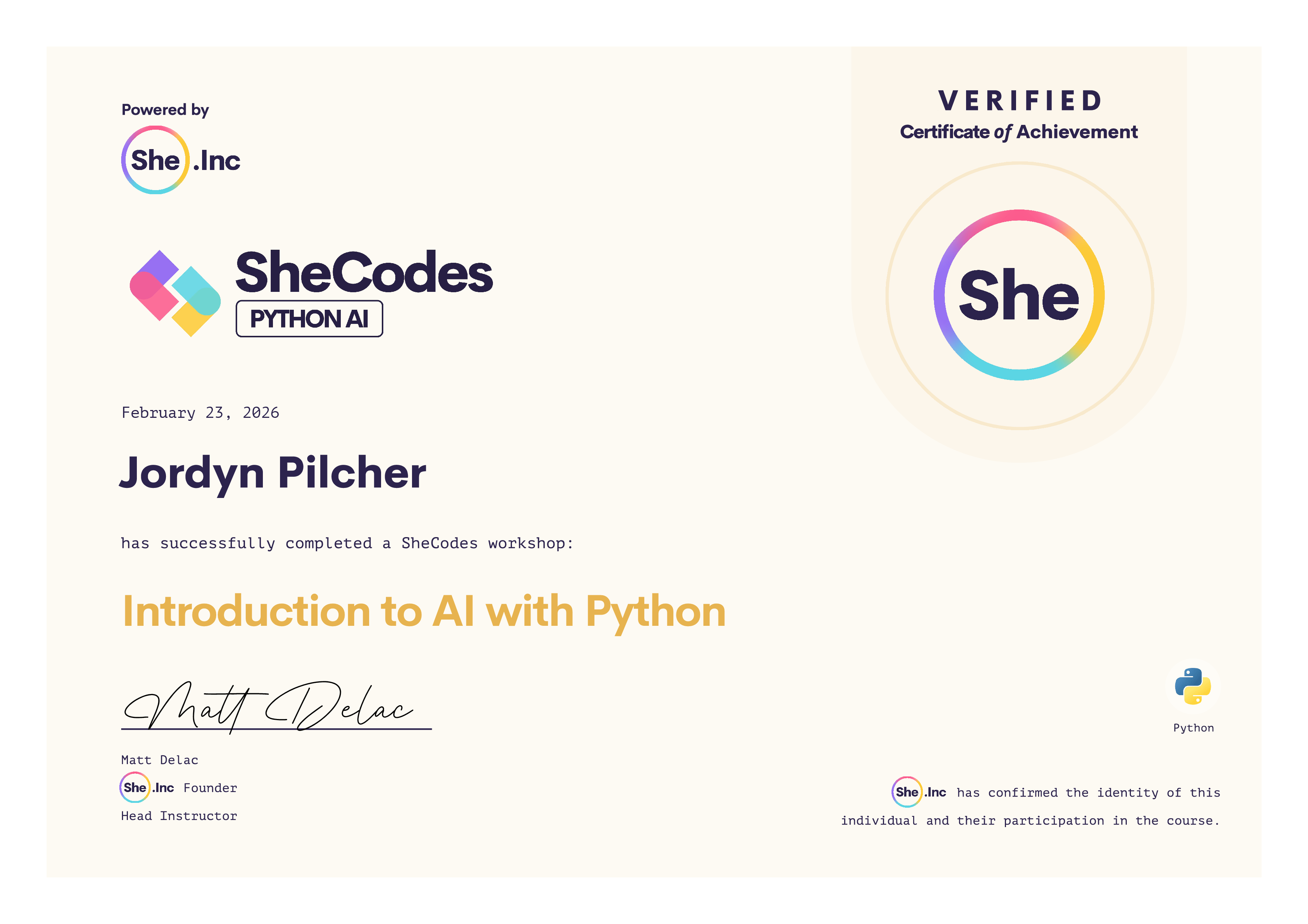 🎓 SheCodes Certifications