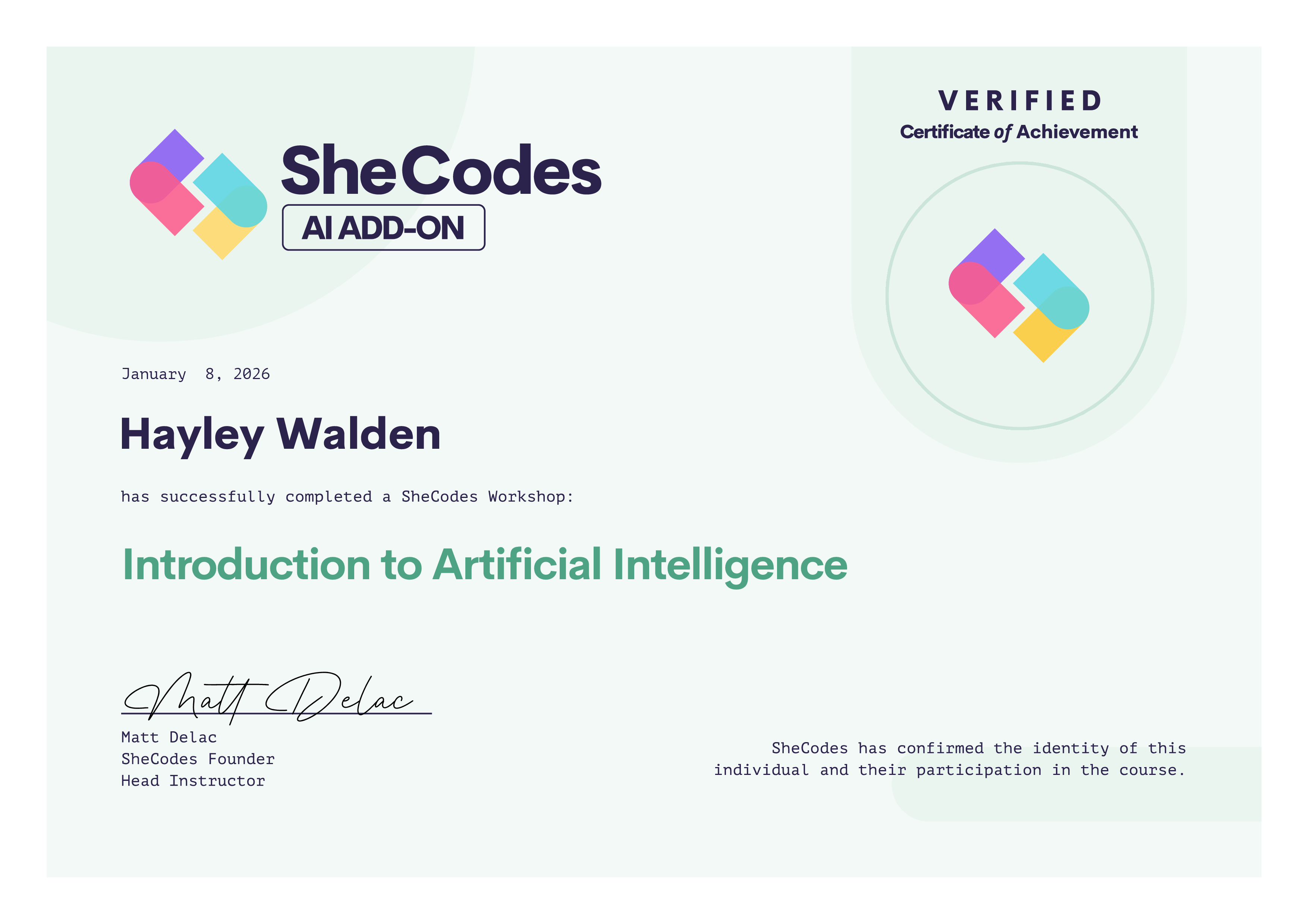 Hayley Walden SheCodes Profile | SheCodes