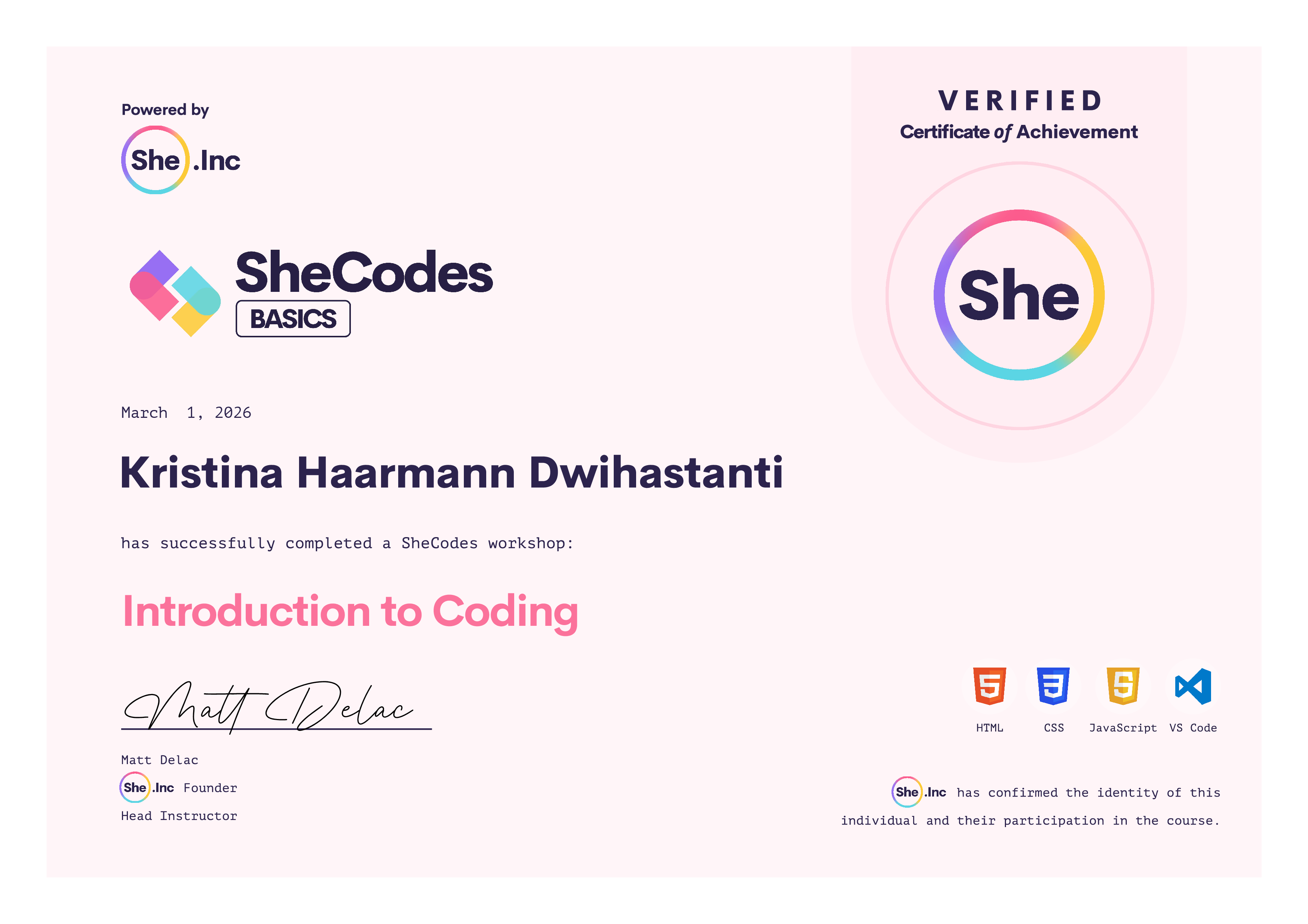 ๐ SheCodes Certifications