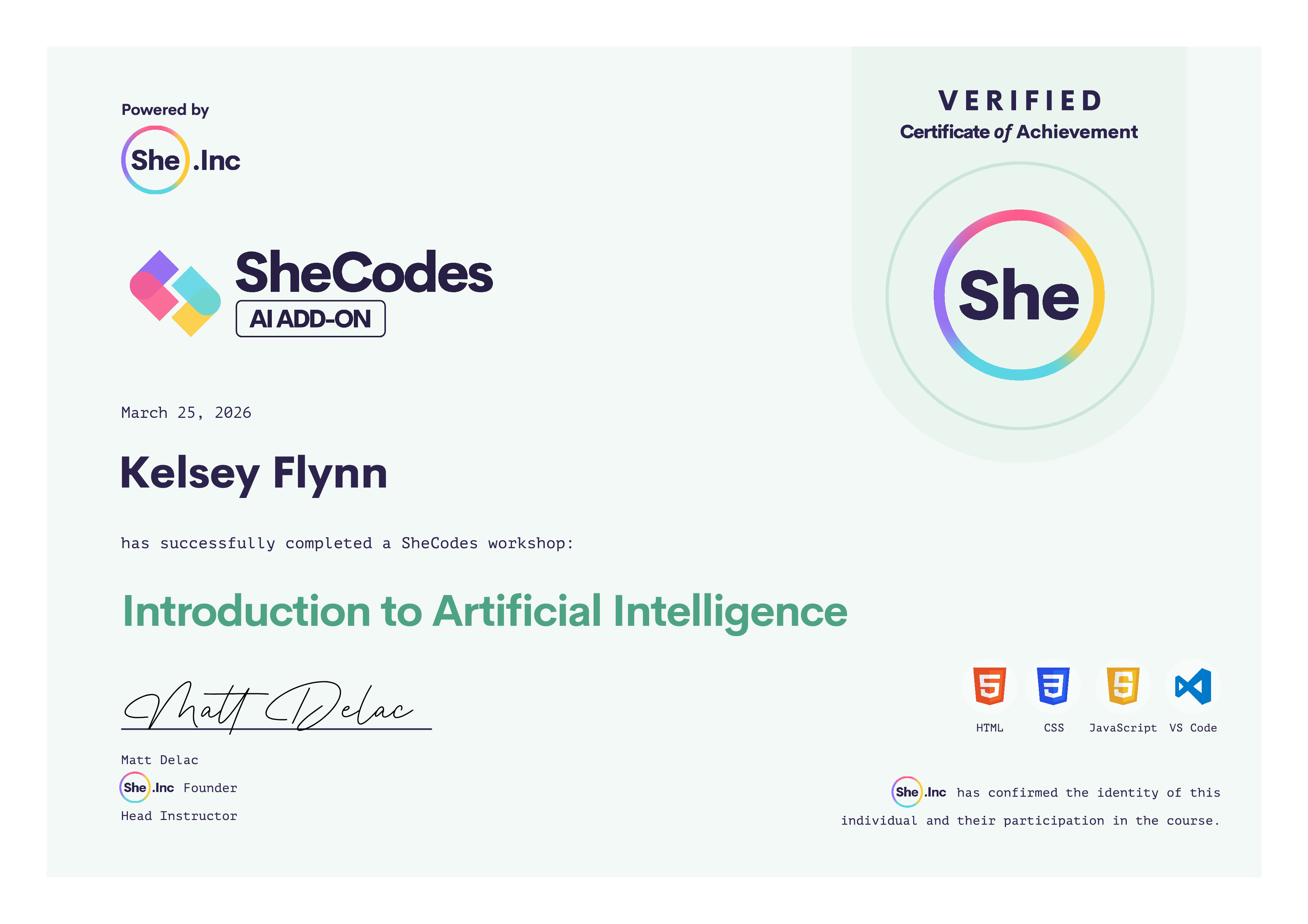 🎓 SheCodes Certifications