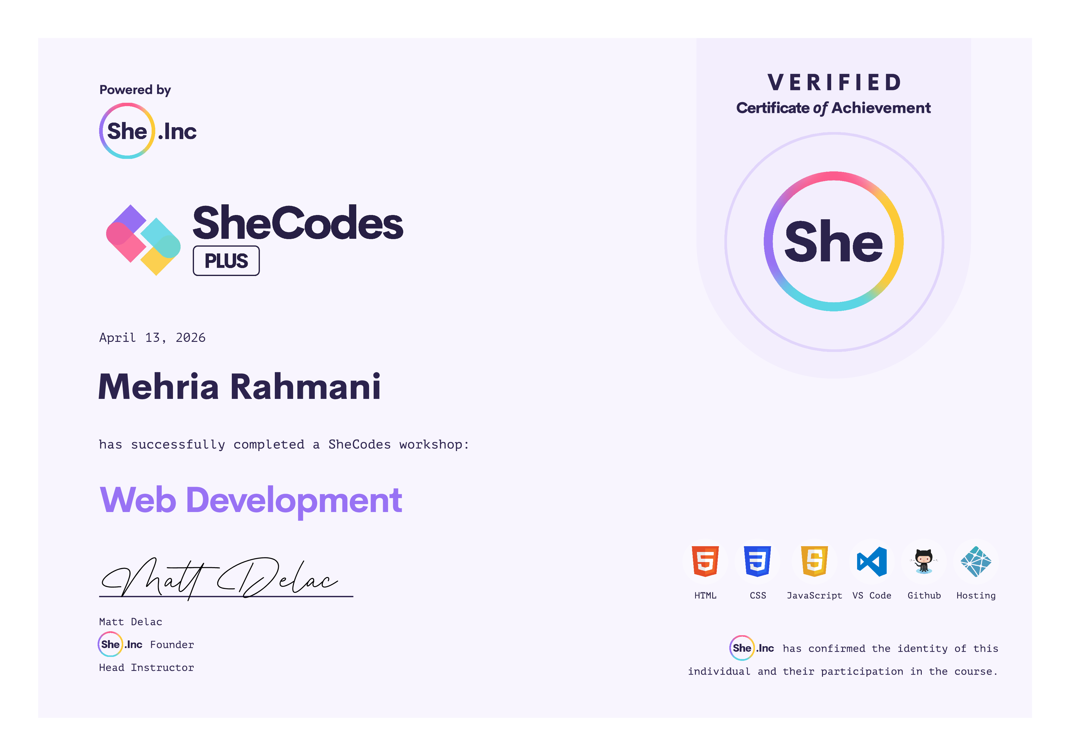 π SheCodes Certifications