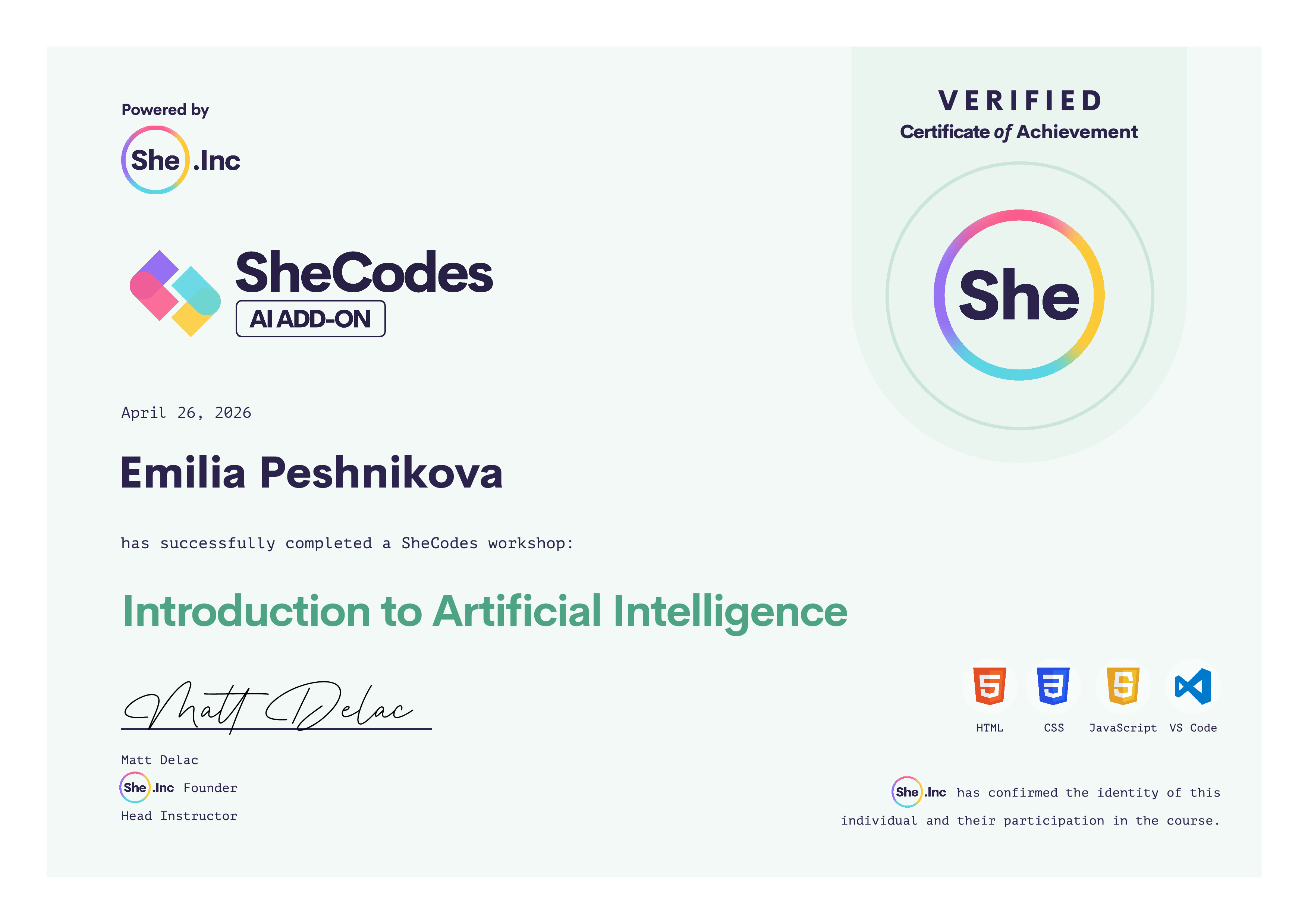 🎓 SheCodes Certifications