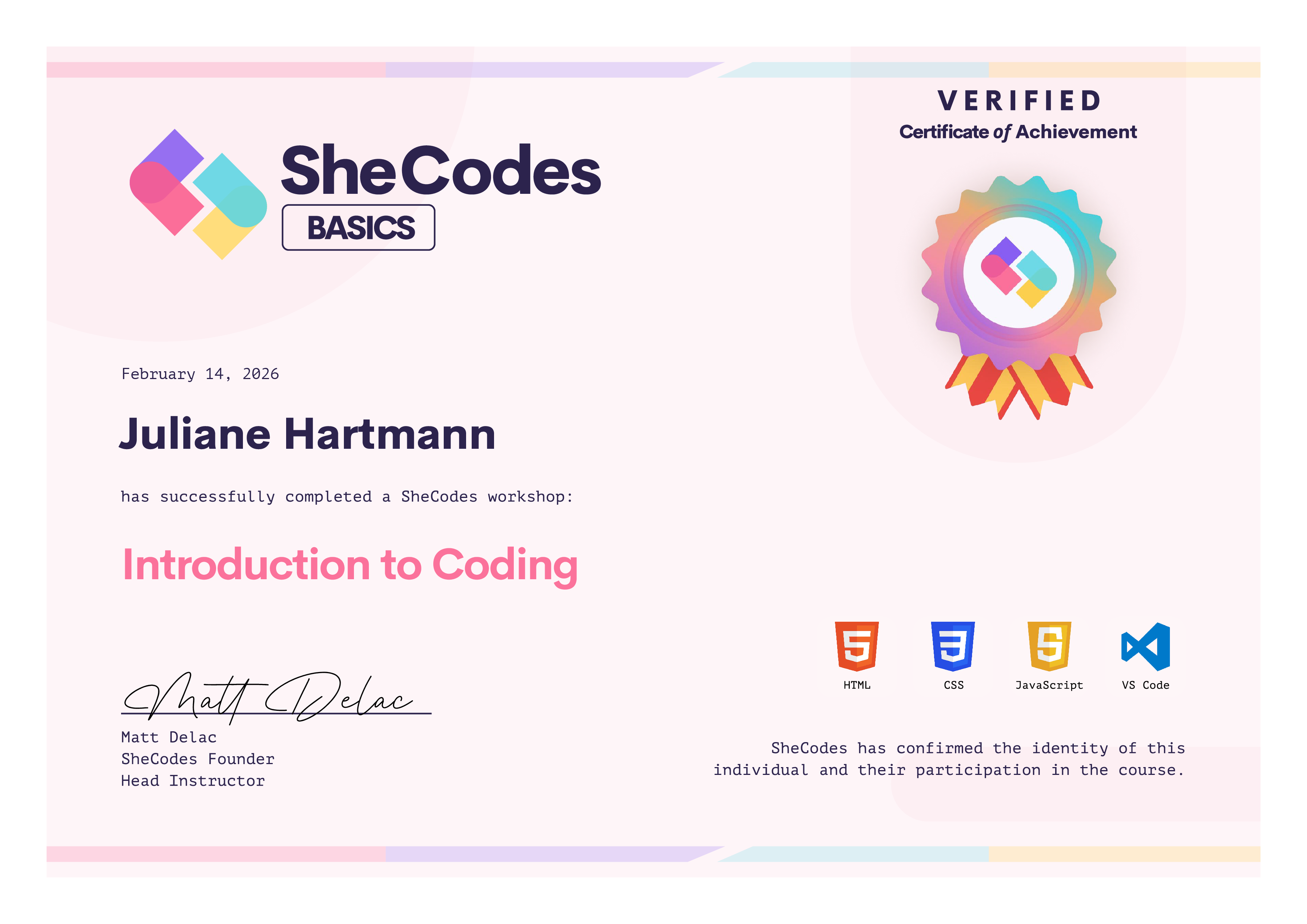 🎓 SheCodes Certifications