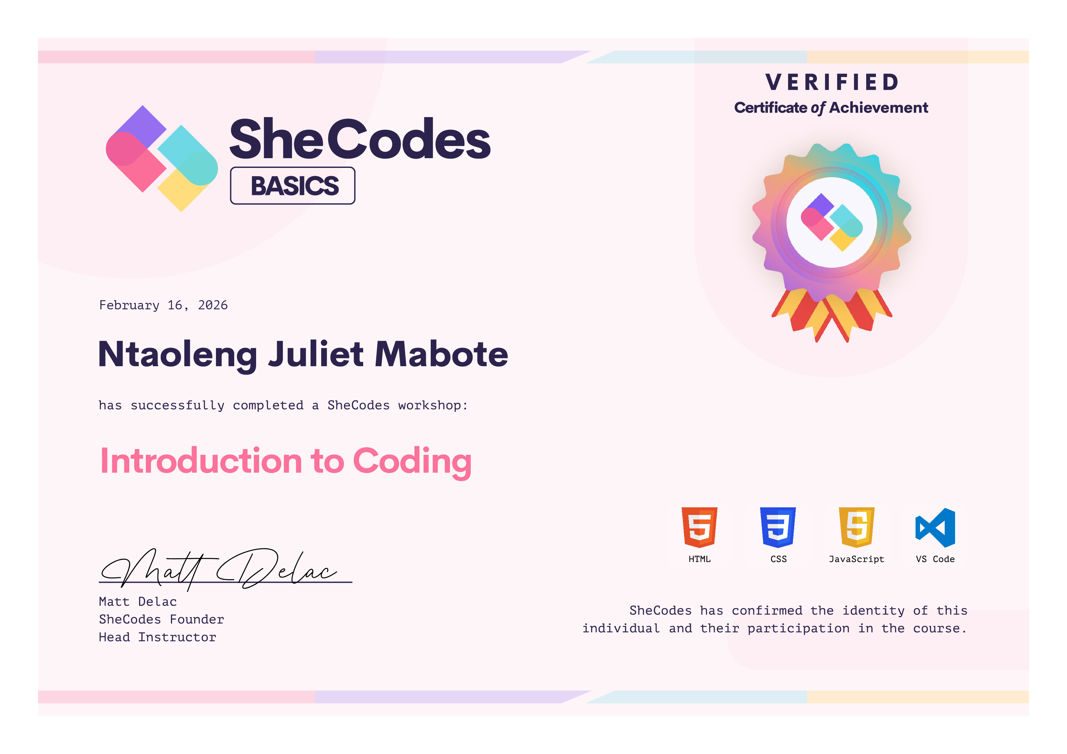 π SheCodes Certifications