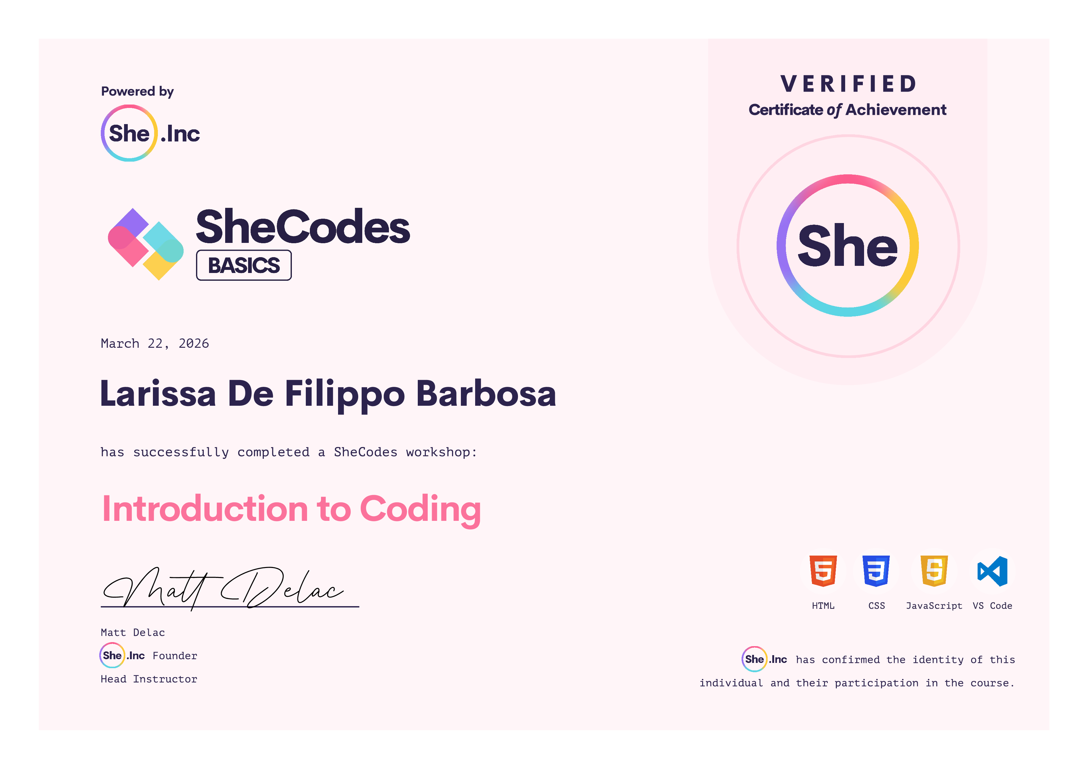 🎓 SheCodes Certifications