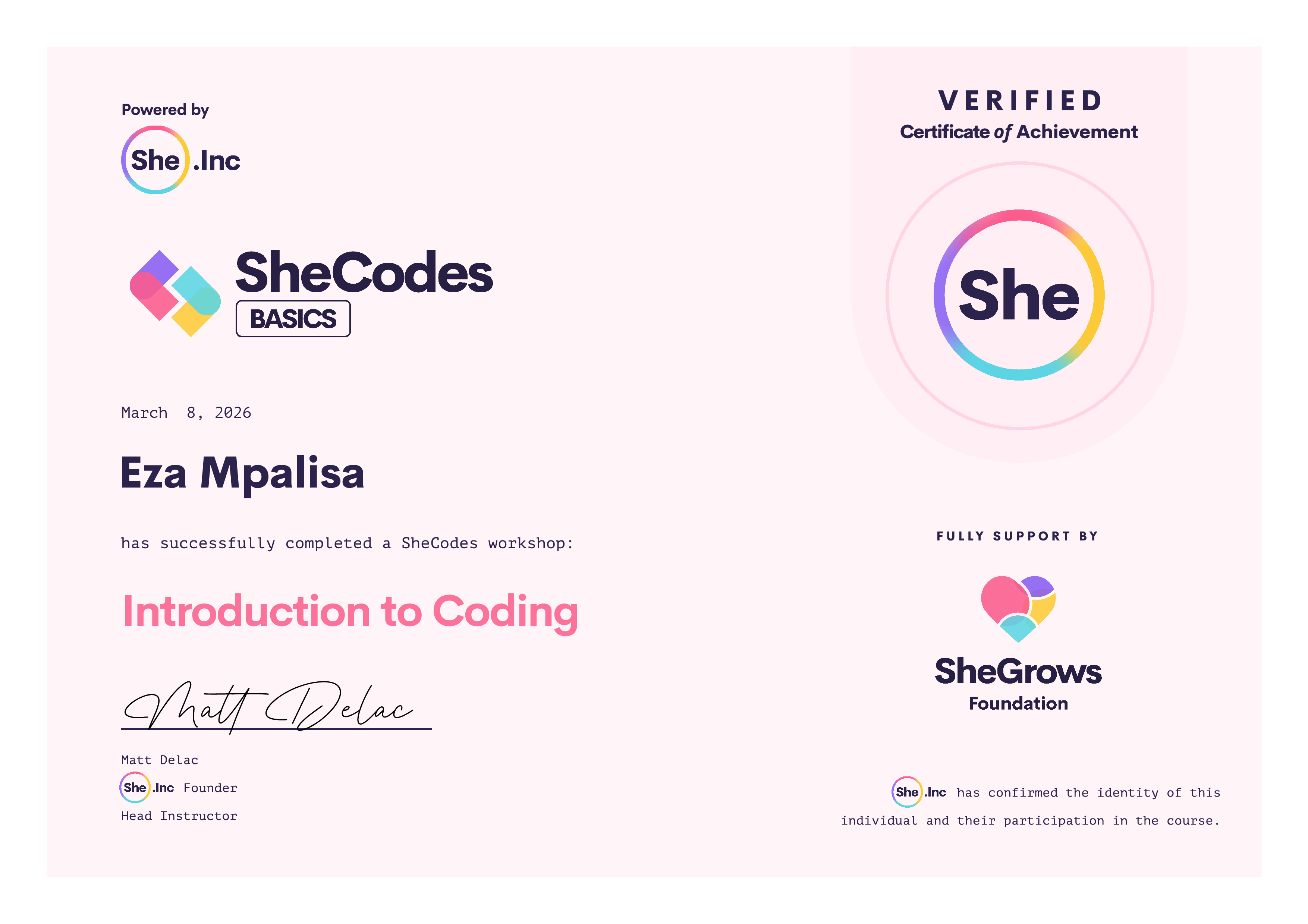 ๐ SheCodes Certifications