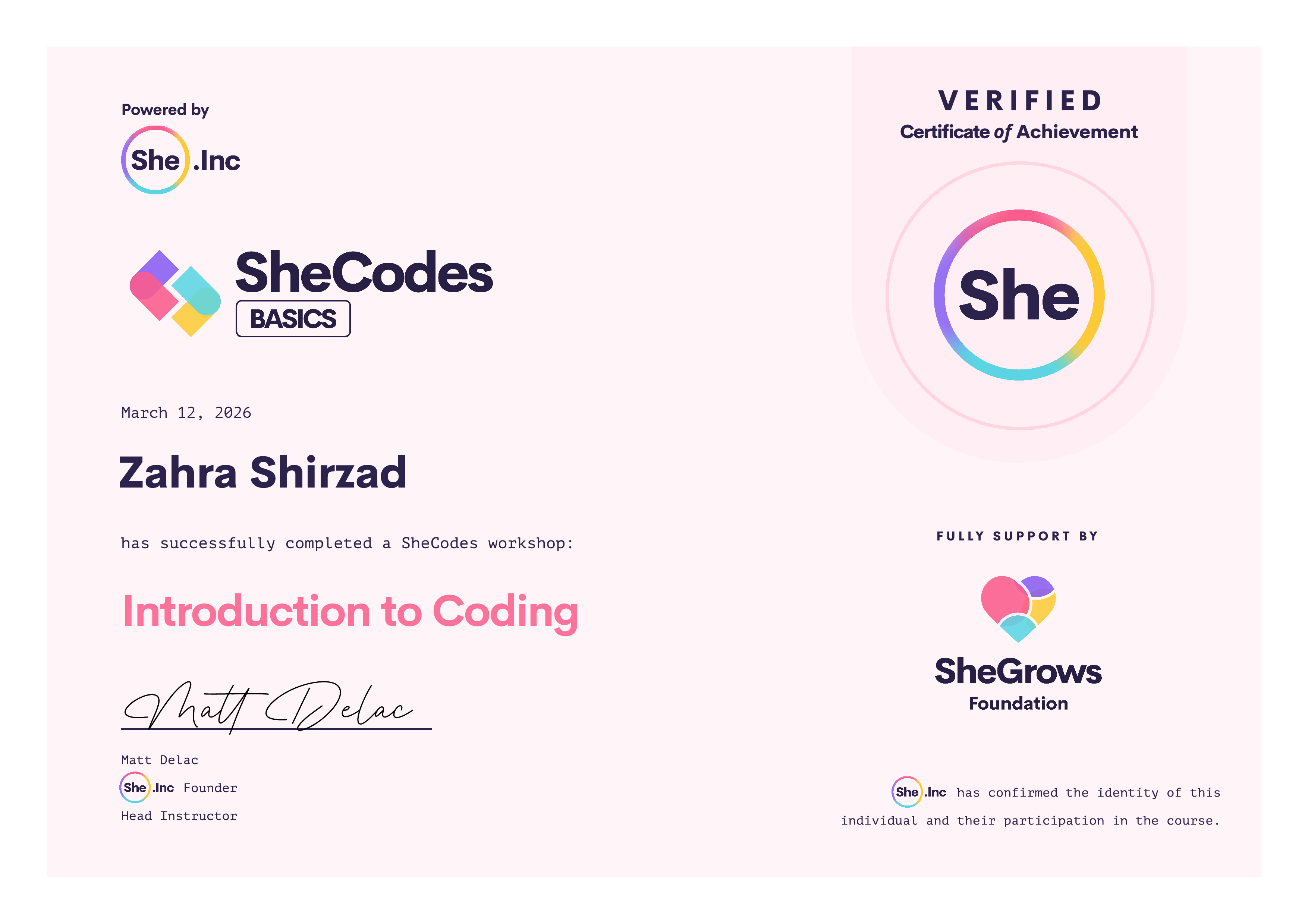 π SheCodes Certifications