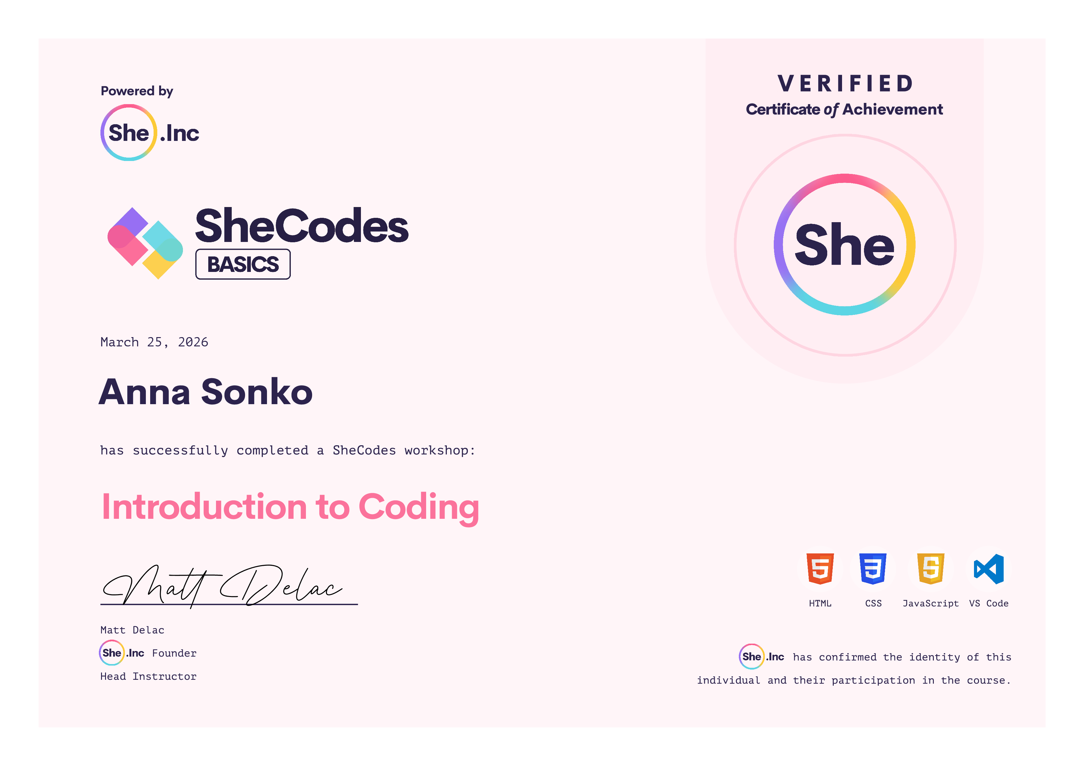 🎓 SheCodes Certifications