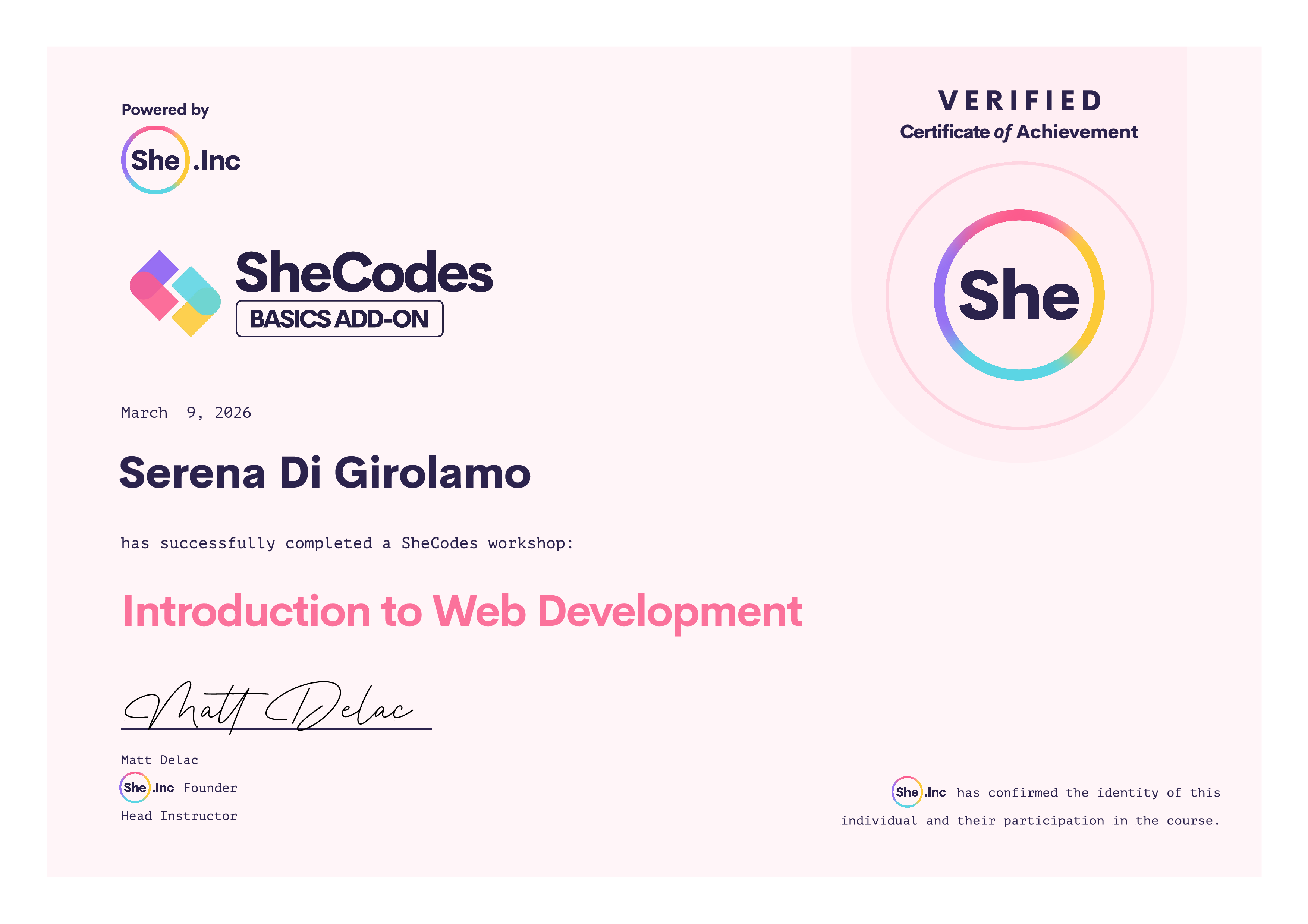 🎓 SheCodes Certifications