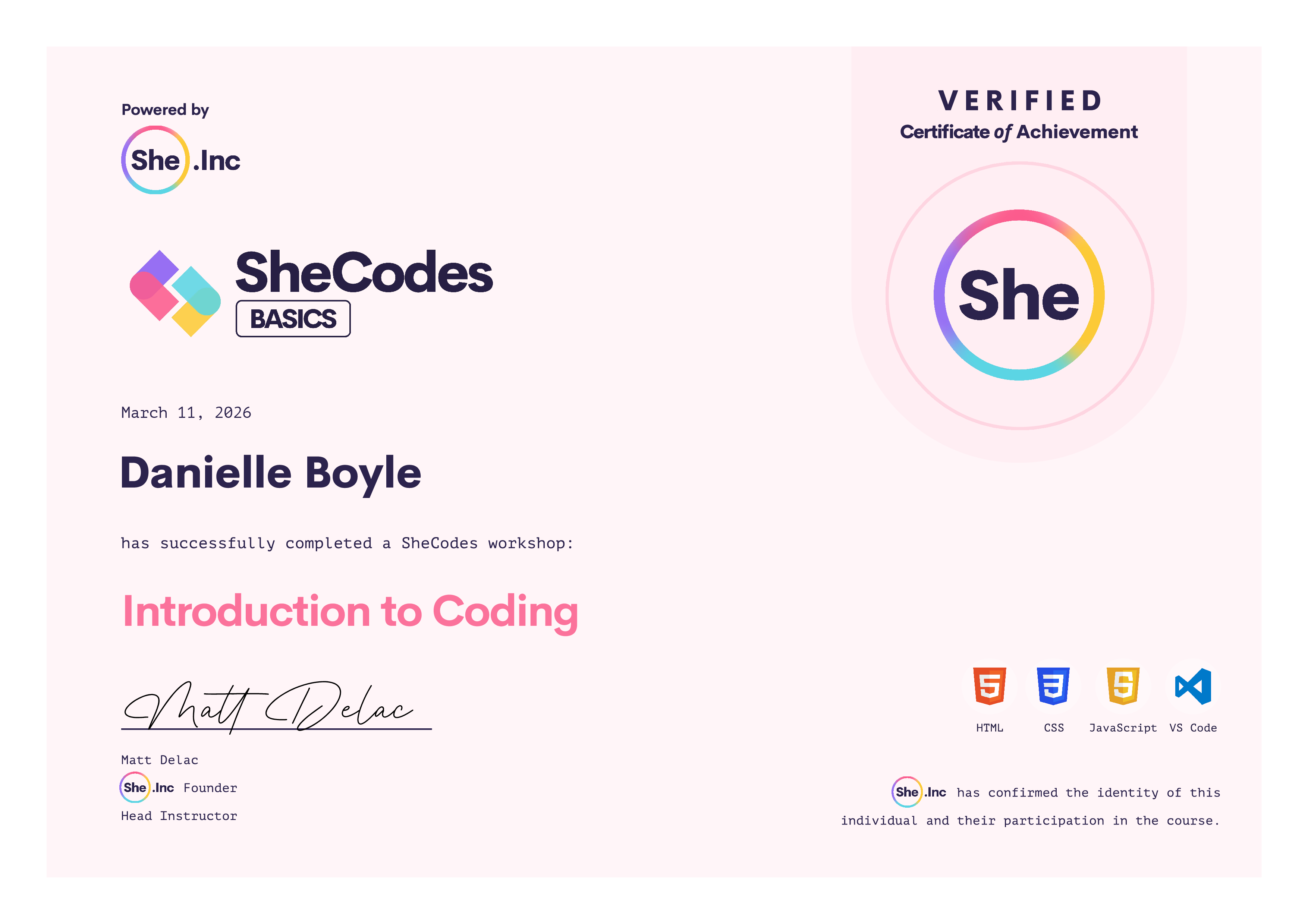 🎓 SheCodes Certifications