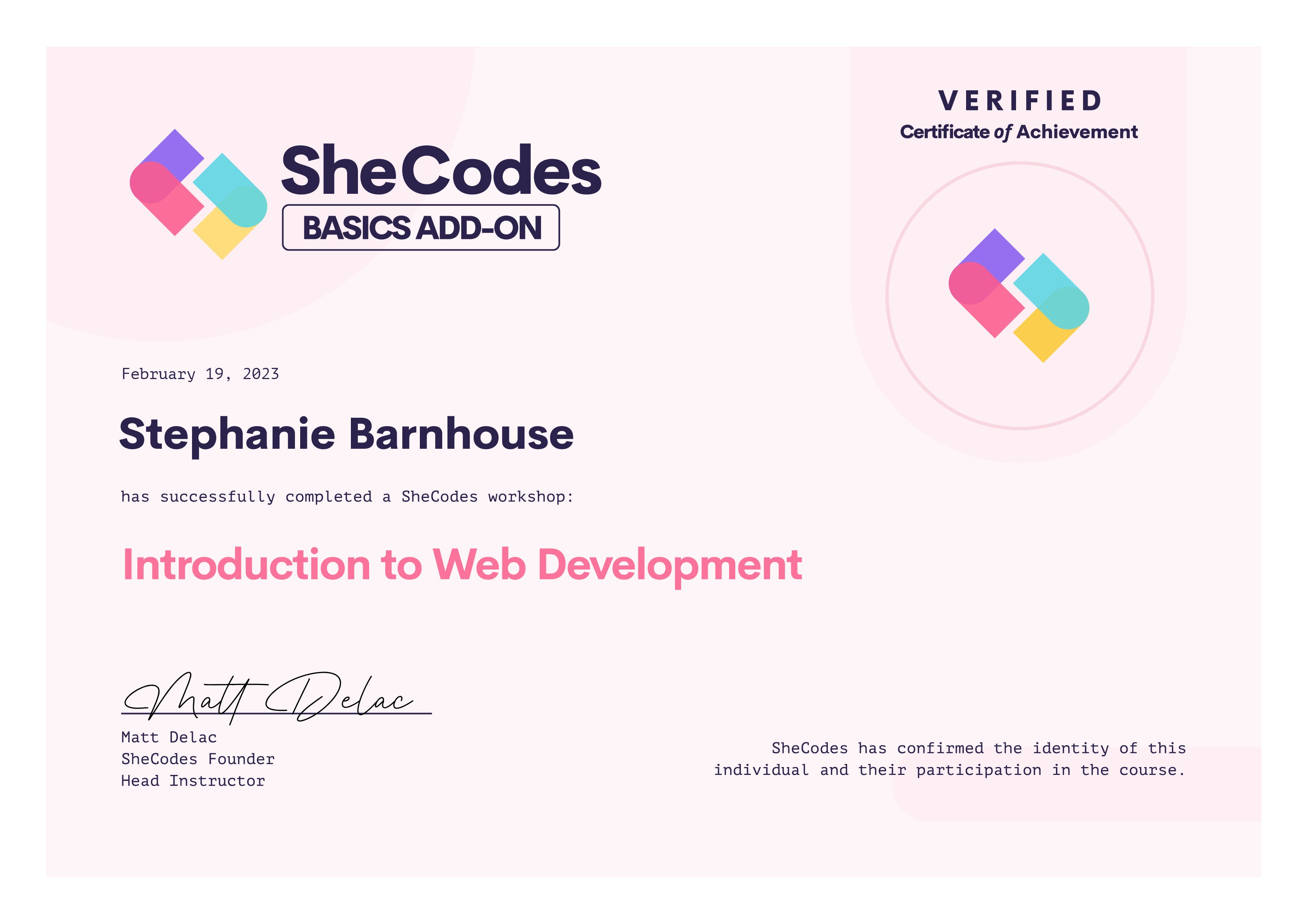Stephanie Barnhouse SheCodes Profile | SheCodes