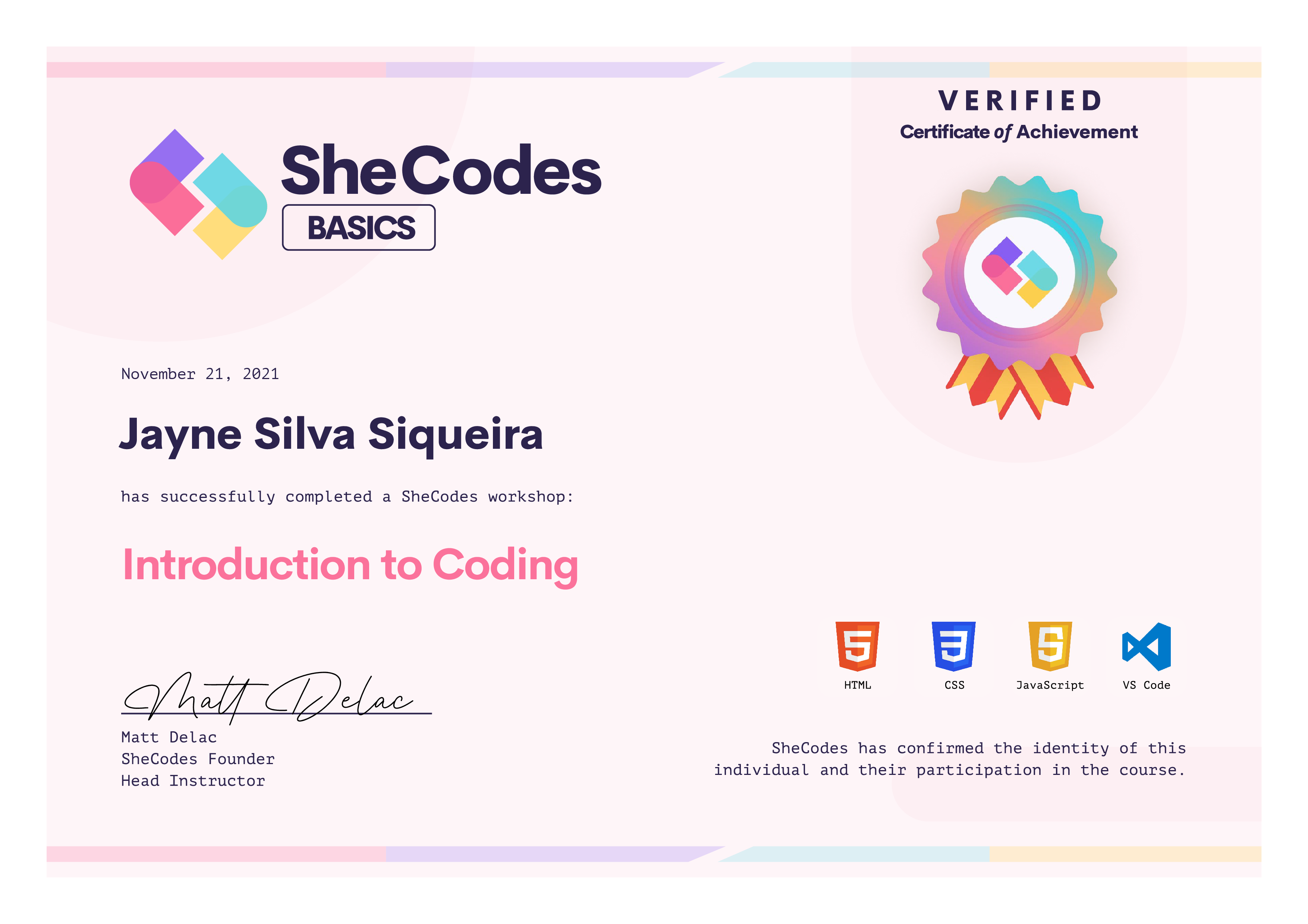 🎓 SheCodes Certifications