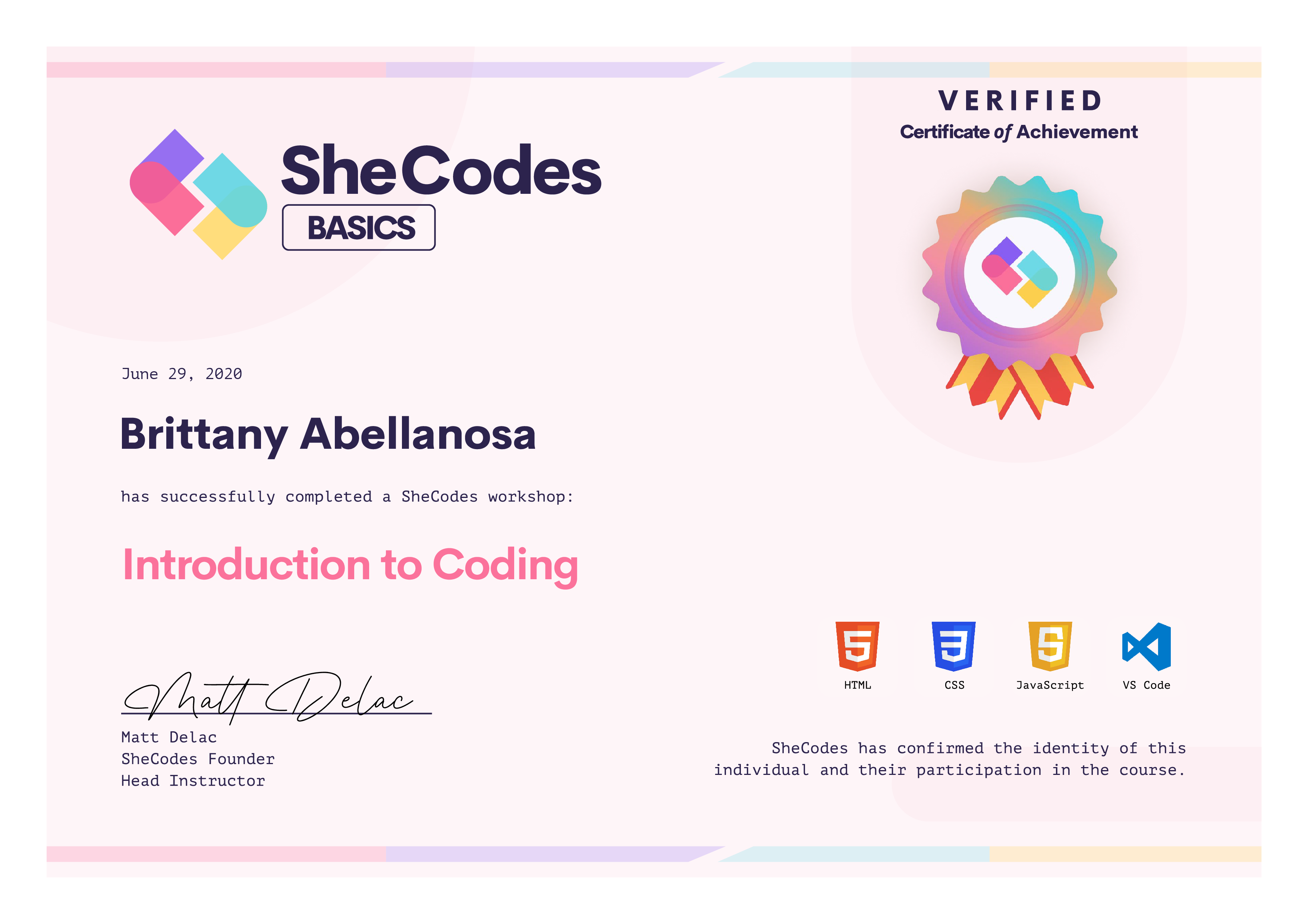 Brittany Abellanosa SheCodes Profile | SheCodes