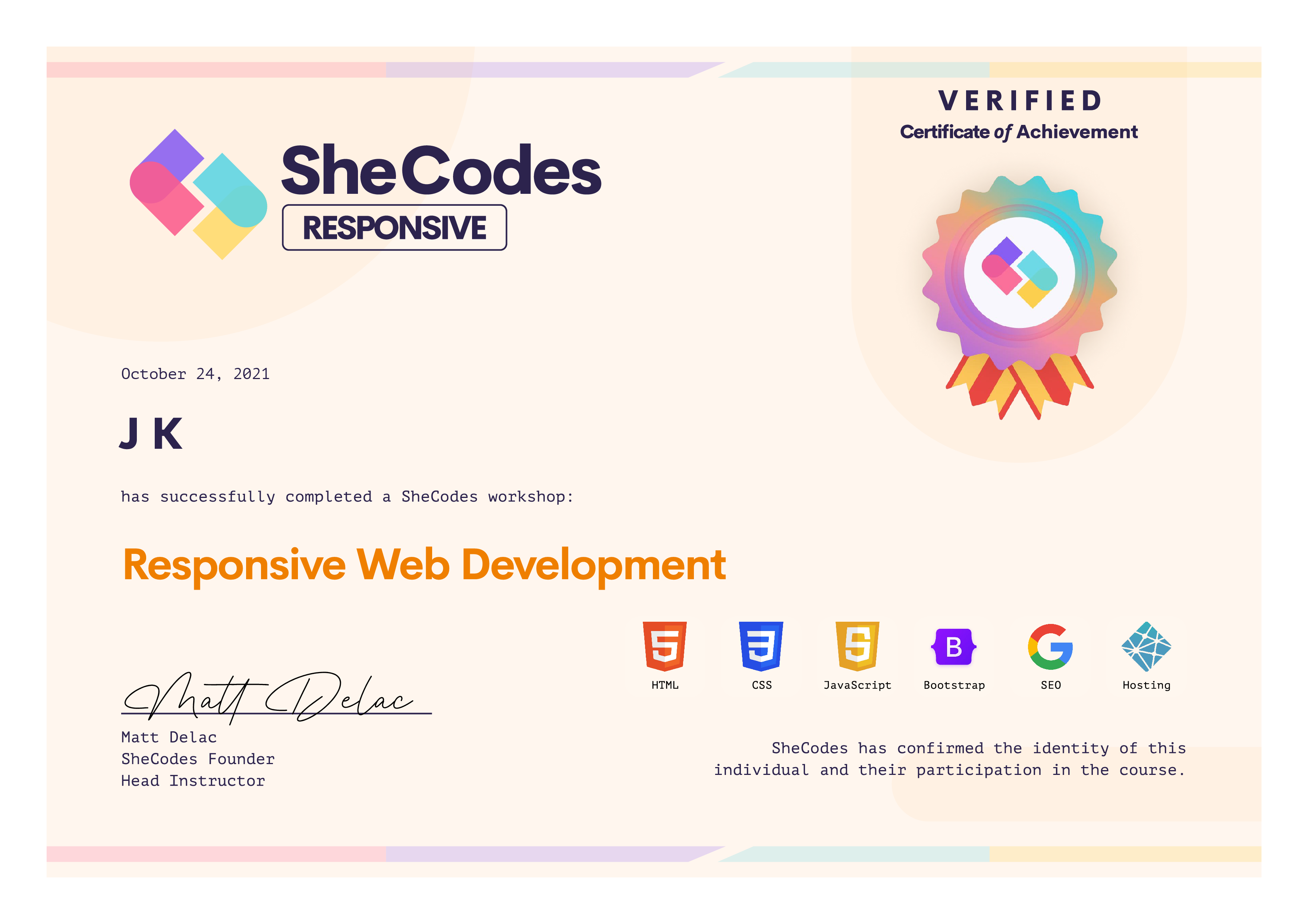 Jia successfully graduated from at least one SheCodes Coding Workshop and is featured in the SheCodes Hall of Fame