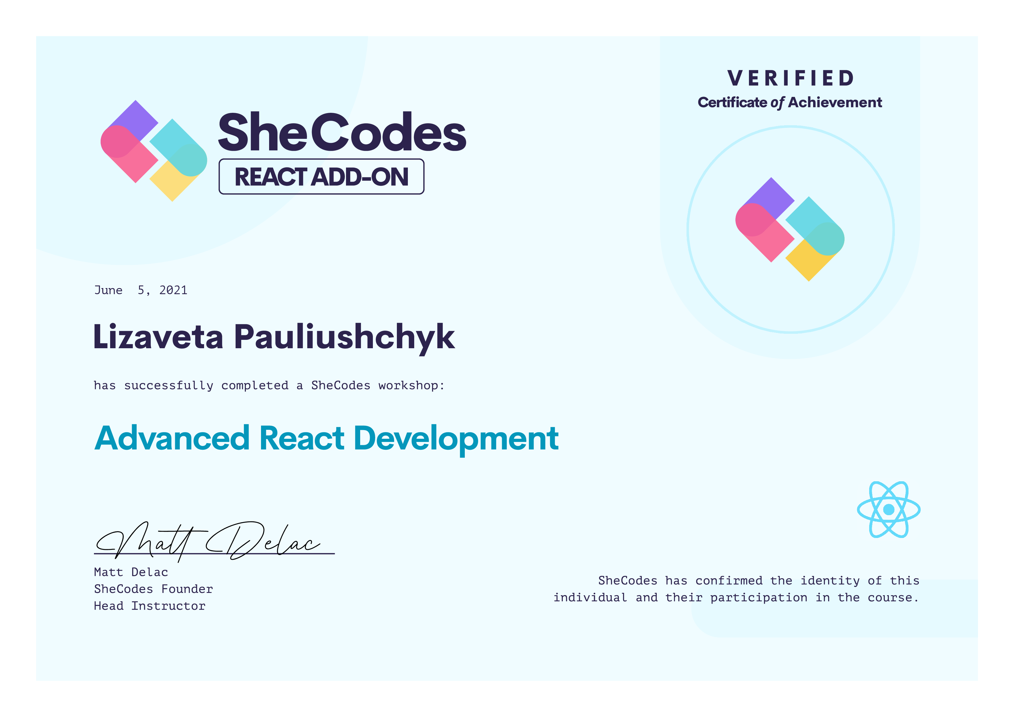 Lizaveta successfully graduated from at least one SheCodes Coding Workshop and is featured in the SheCodes Hall of Fame