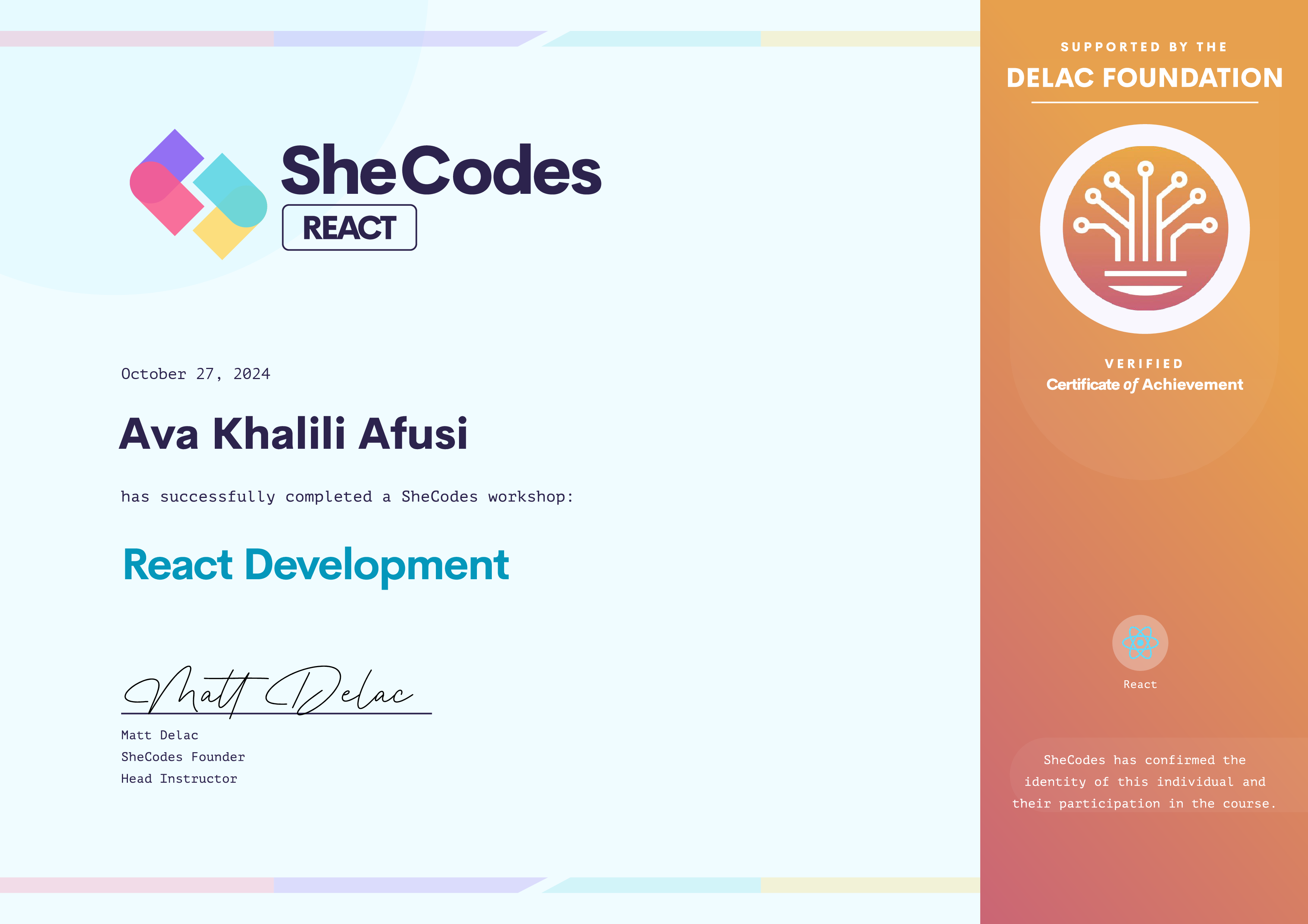 Ava has been fully supported by the Delac Foundation to complete this SheCodes Workshop