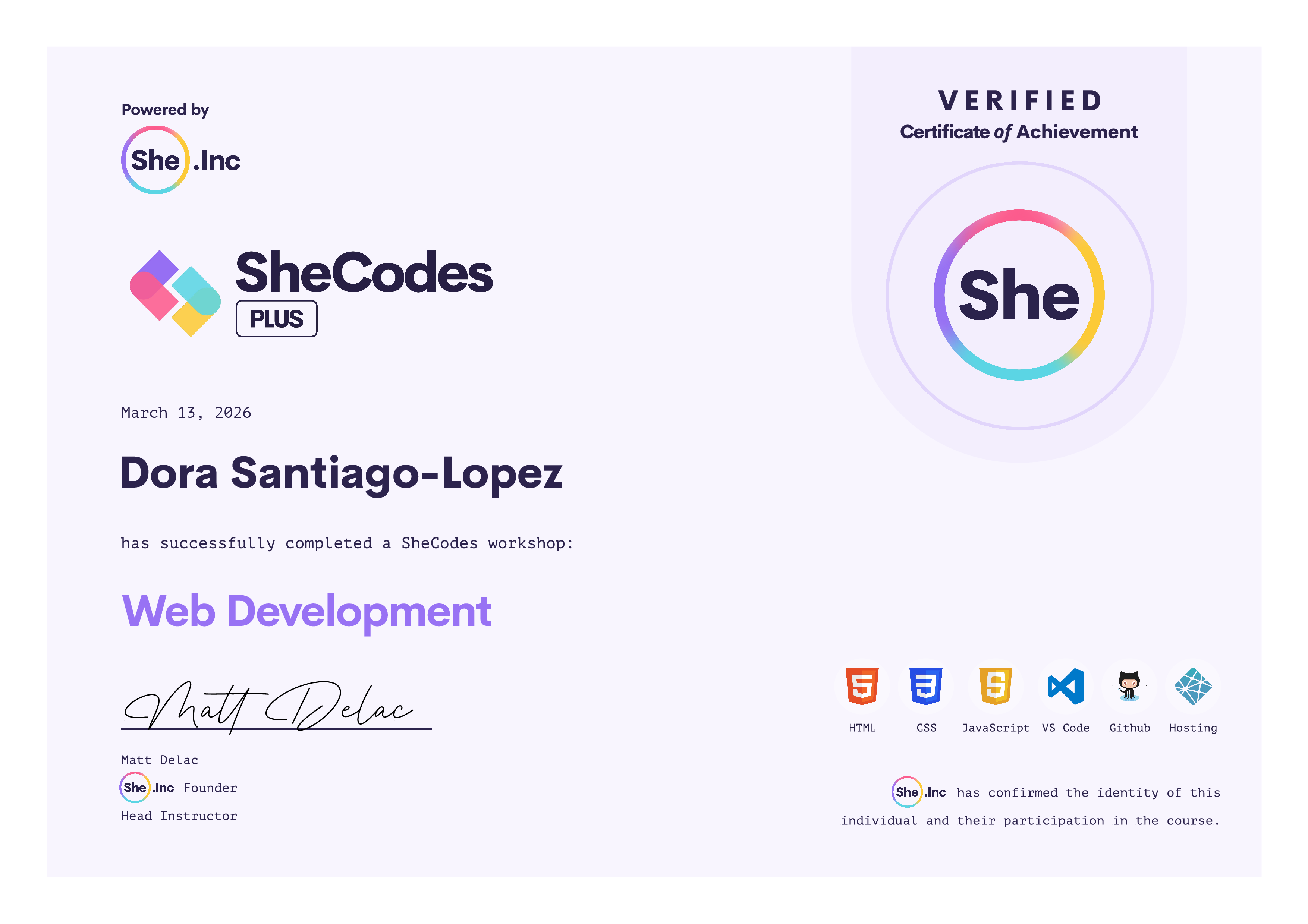🎓 SheCodes Certifications