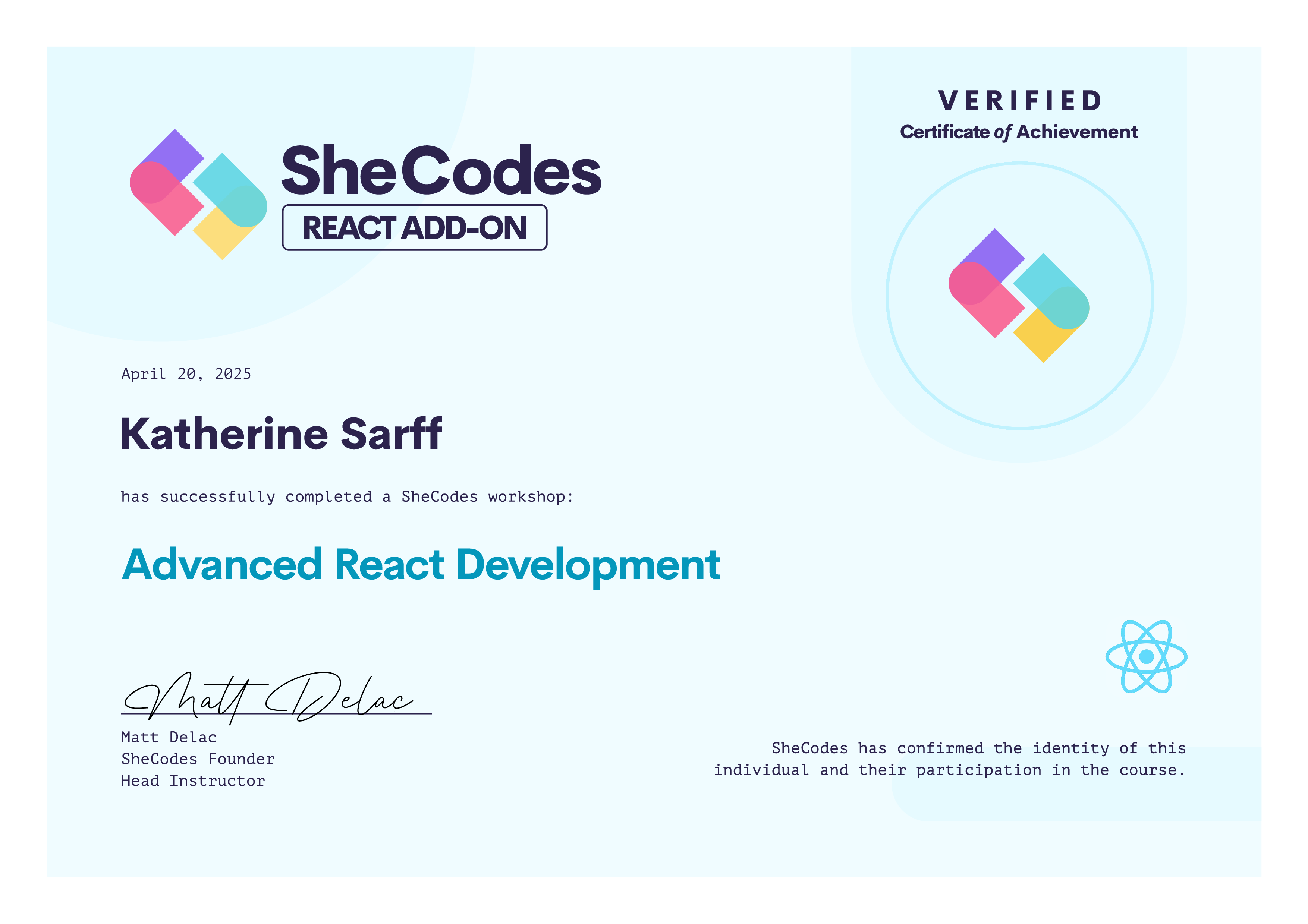 Katherine Sarff SheCodes Profile | SheCodes