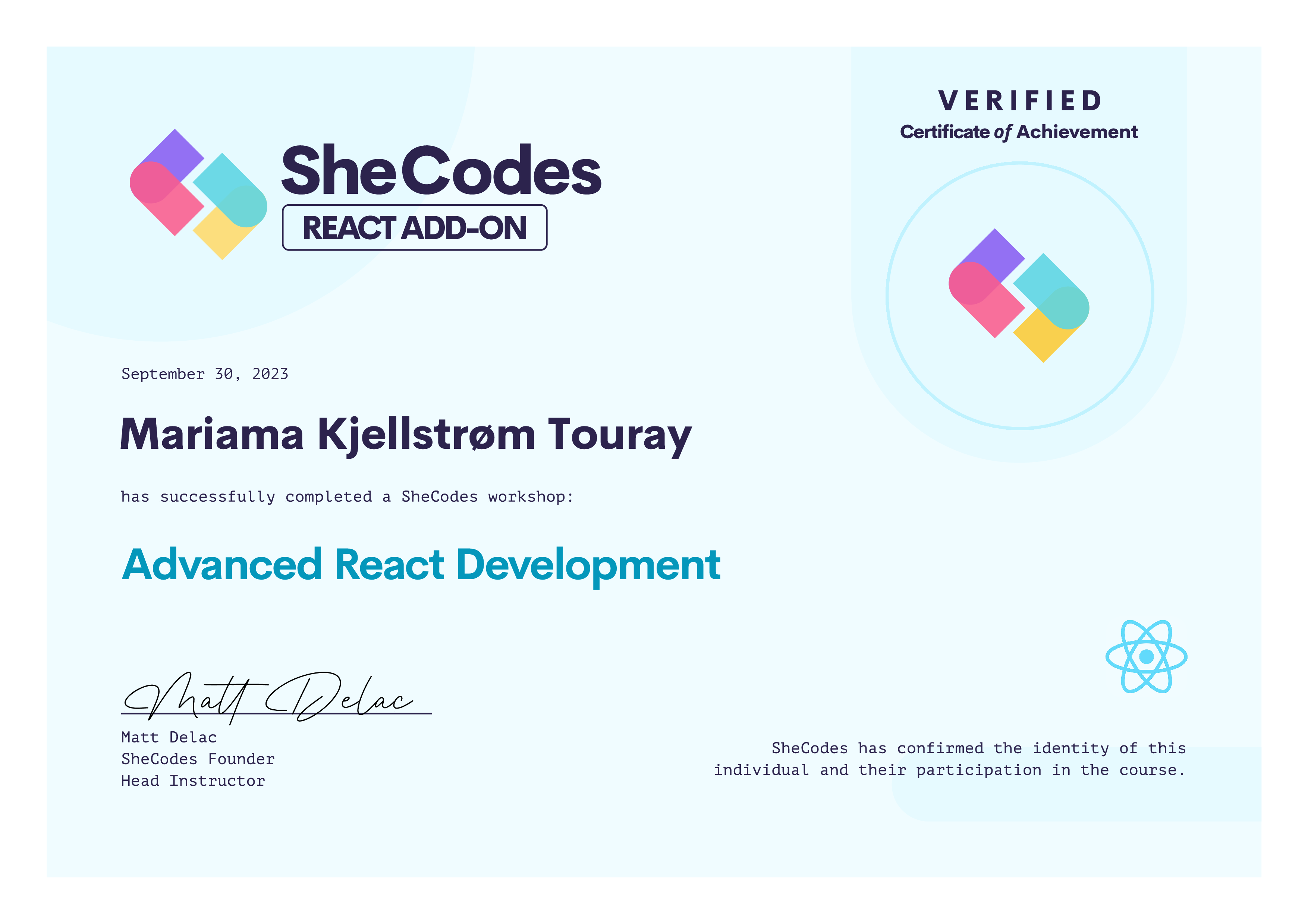 Mariama successfully graduated from at least one SheCodes Coding Workshop and is featured in the SheCodes Hall of Fame