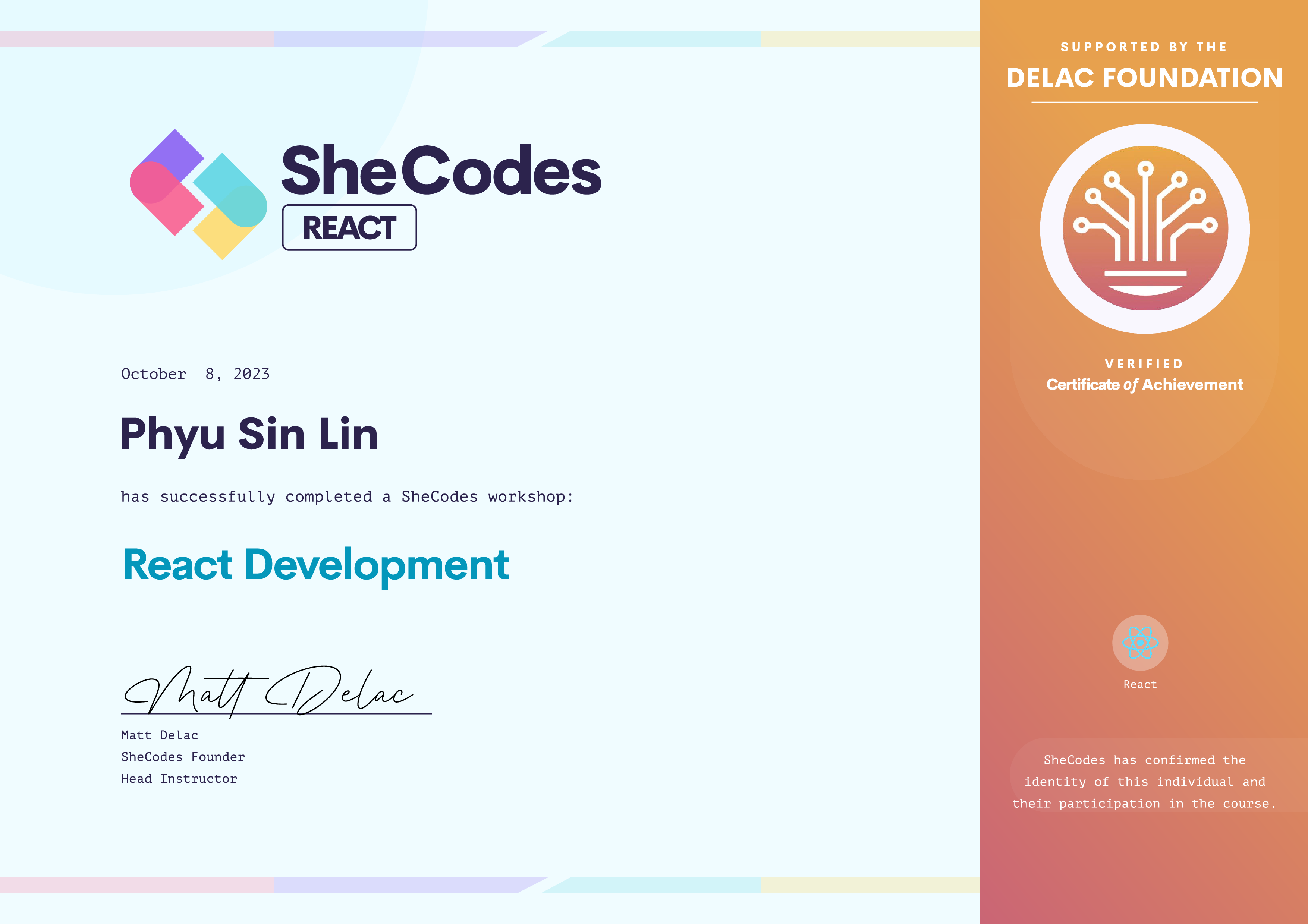 Phyu Sin Lin SheCodes Profile | SheCodes