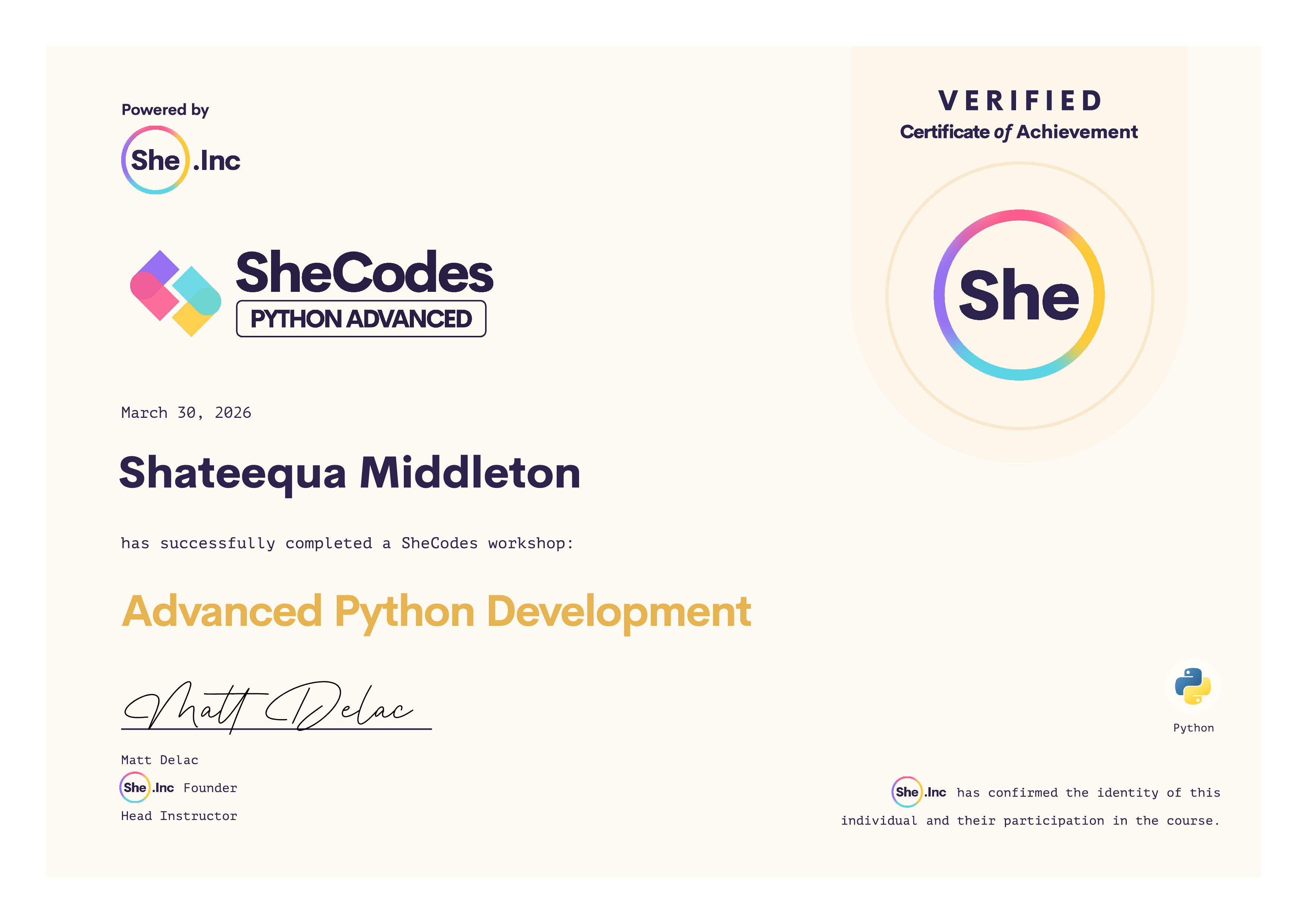 🎓 SheCodes Certifications