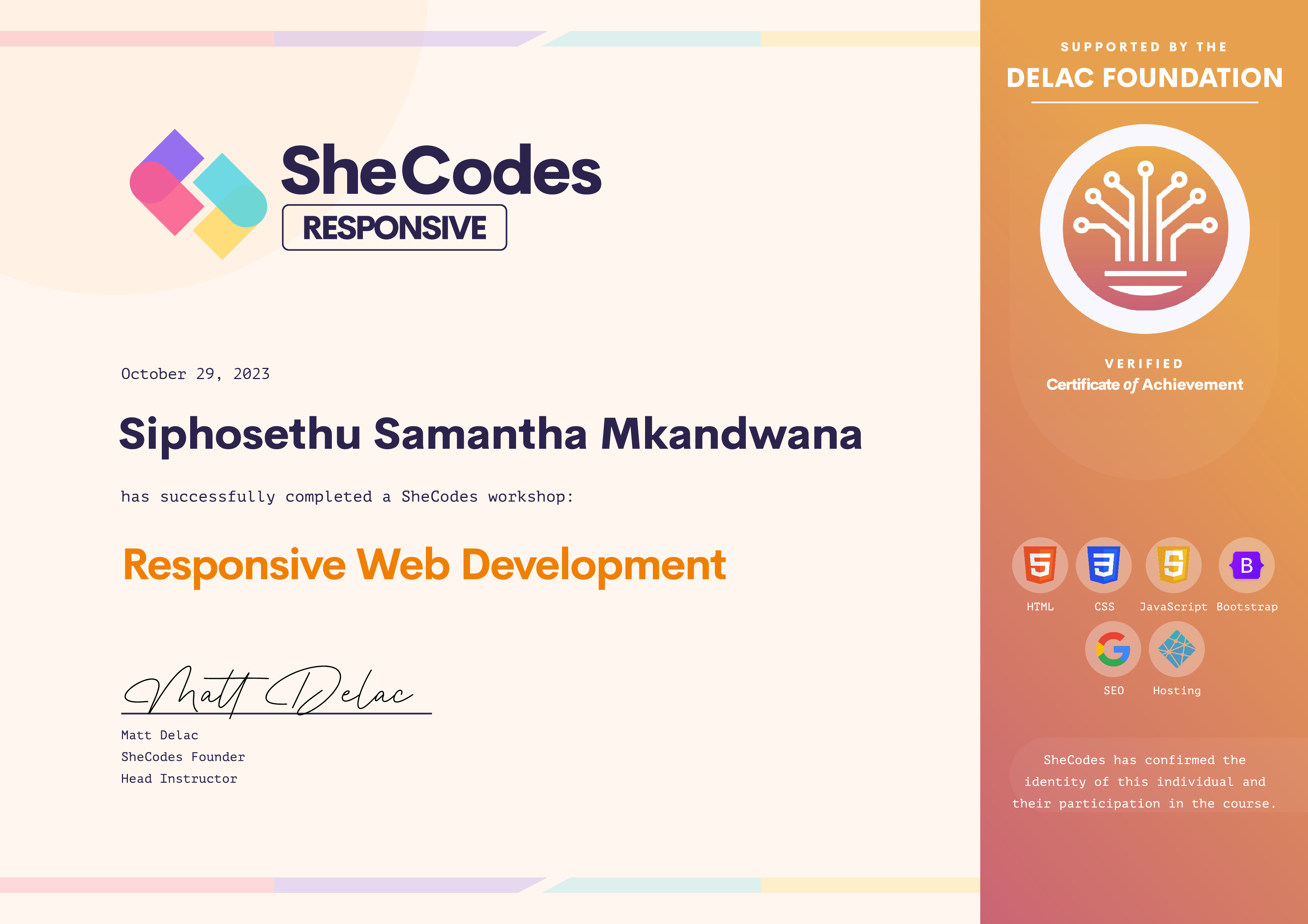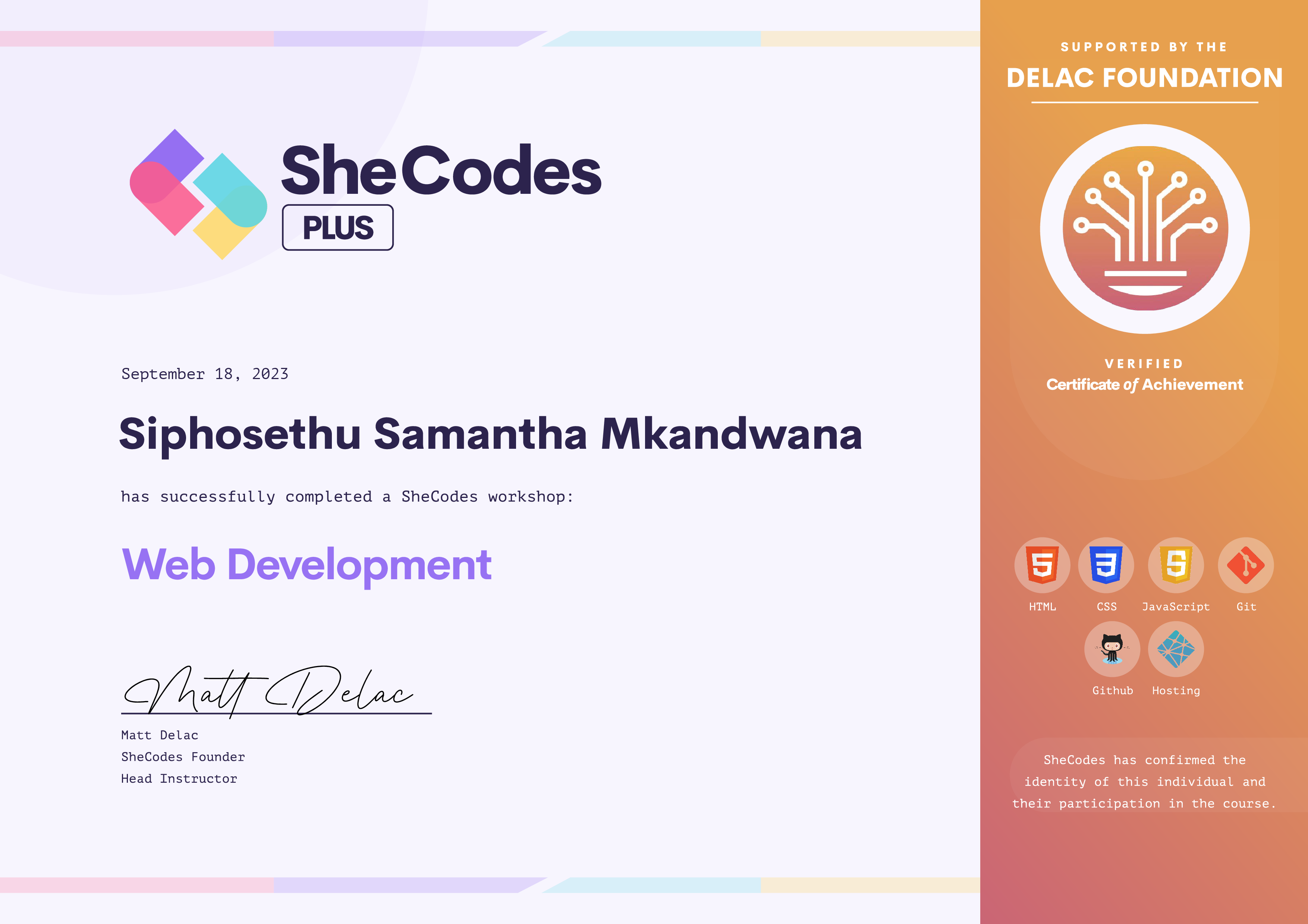 Siphosethu Samantha Mkandwana SheCodes Profile | SheCodes