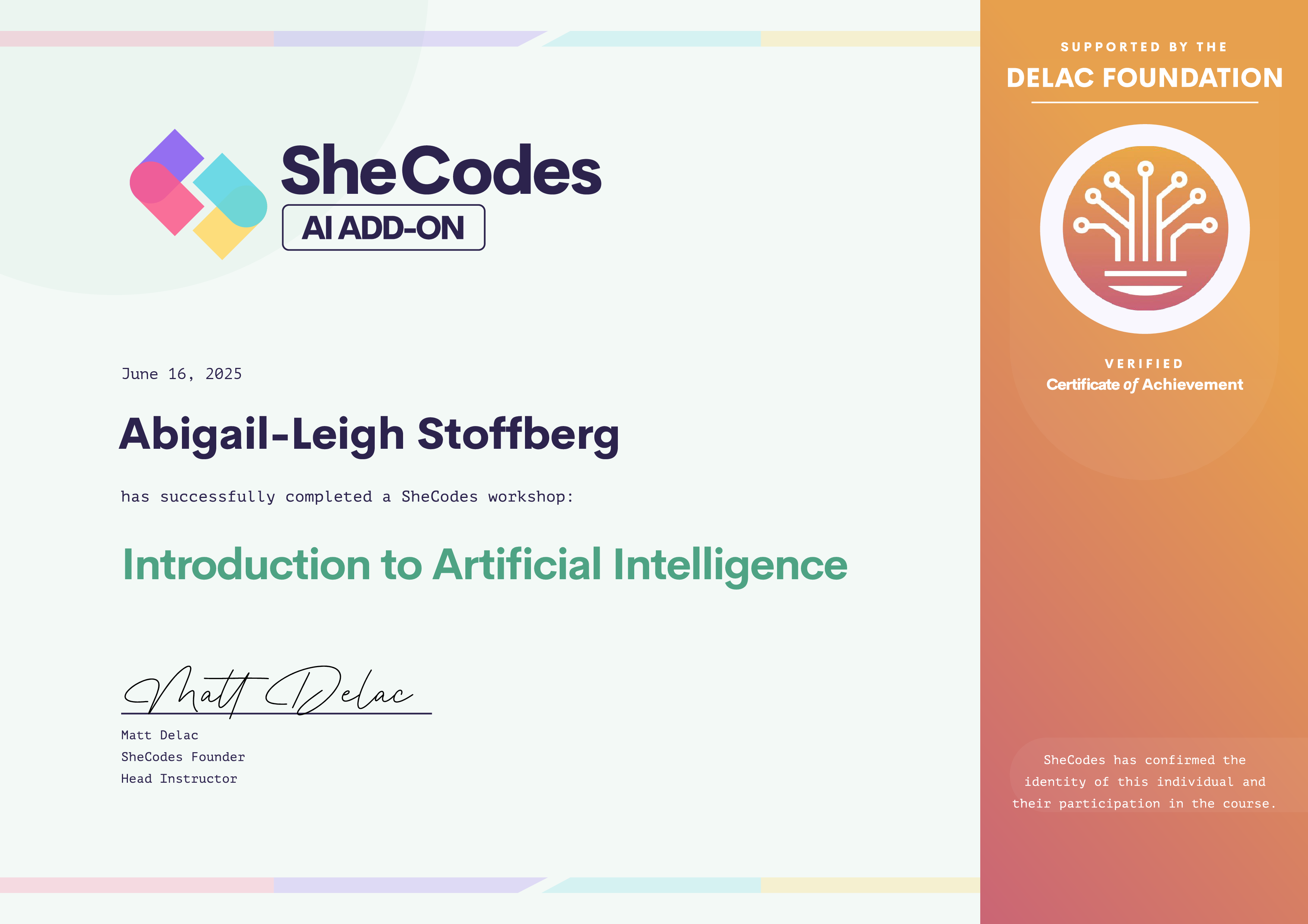 Abigail-Leigh Stoffberg SheCodes Profile | SheCodes