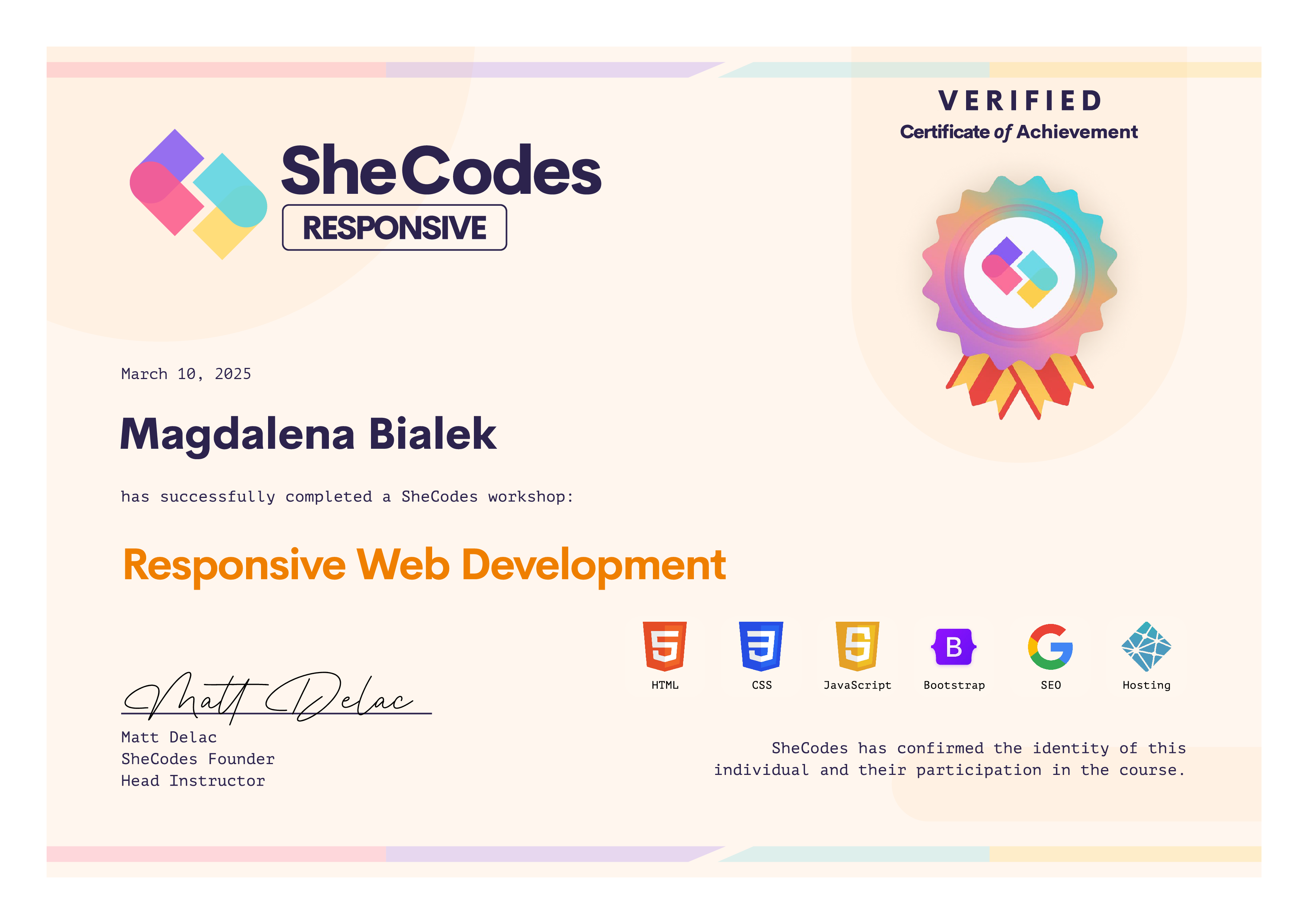 Magdalena Bialek SheCodes Profile | SheCodes